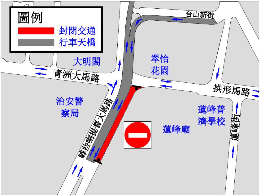 配合民政總署進行的維修抽水站工程,提督馬路近蓮峰廟的路段將於本月15日(周三)至21日,及本月30日至8月2日的每日凌晨1時至早上6時封閉,除緊急服務車輛外,禁止其他車輛通行及停泊。交通事務局呼籲駕駛者遵守路上所設置的臨時交通標誌,並服從交通警員指揮。