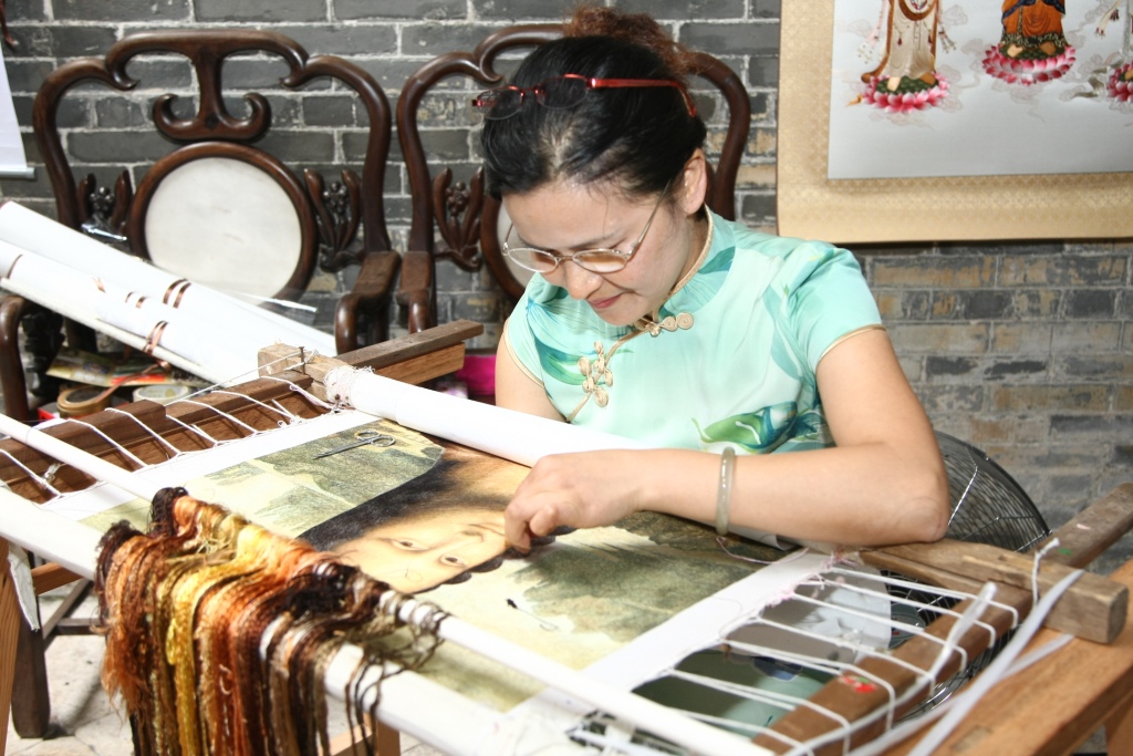 蘇州自清代起已有“繡市”之稱,後經名家不斷鑽研,進一步形成了一套完整的繡法體系,創立出獨特的繡種如雙面繡、雙面三異繡等,使蘇繡藝術大放光彩,成為我國四大名繡之一。從事蘇繡行業近三十年的蘇州工藝家蔡梅英堪稱全能的“繡手”, 在刺繡人物、花卉、動物、風景等方面技藝全面,作品形象逼真、細膩,針法運用靈活。蔡梅英一直孜孜不倦地追求更高層次的藝術,從單面繡發展到雙面繡、雙面異面繡等,近年尤以刺繡人物肖像而備受注目,是我國知名的工藝美術大師,多件作品在中國工藝美術大師精品博覽會及評比中屢獲殊榮。是次來澳展演的作品涵蓋花鳥、動物、人物肖像等。