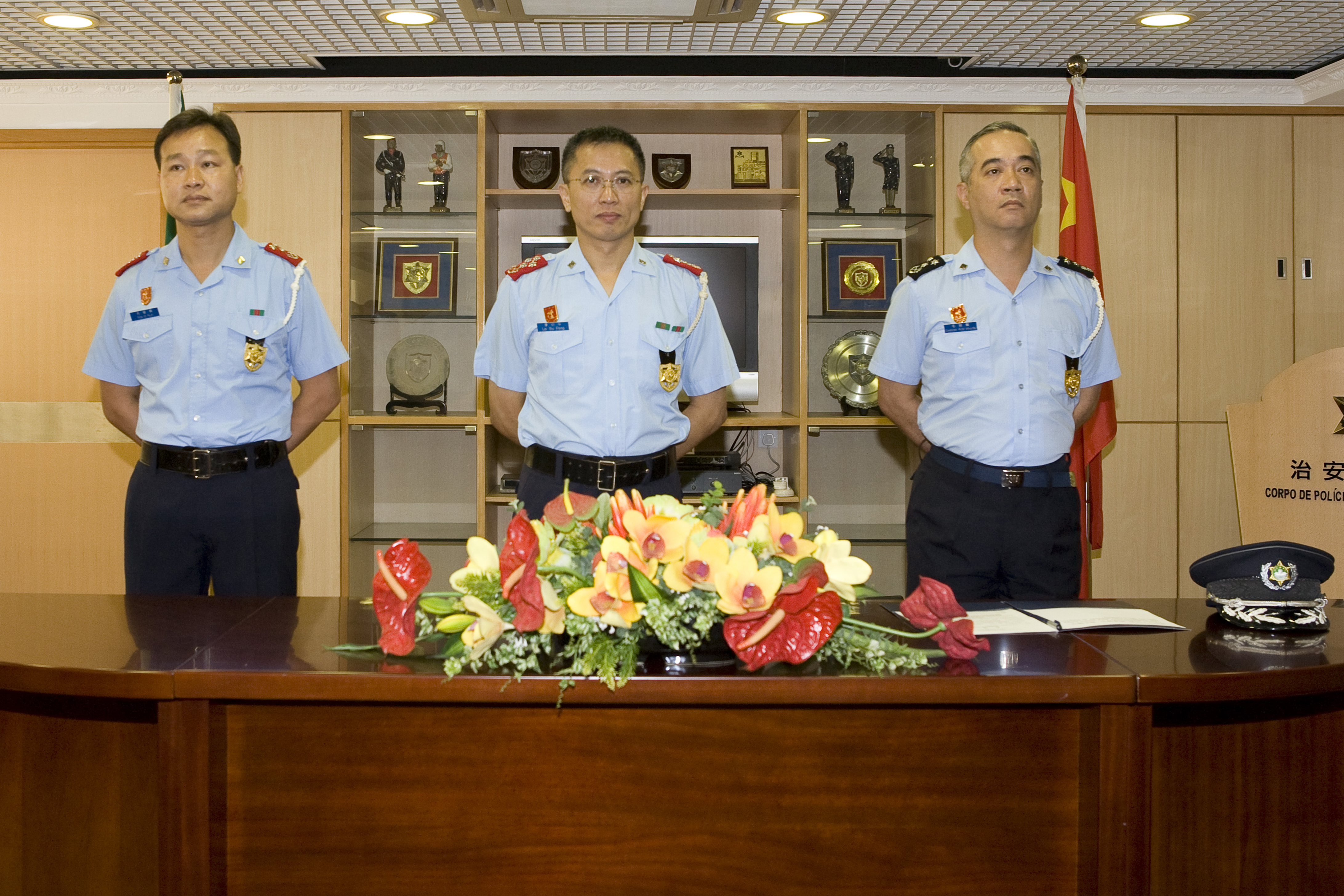 今天(三日)上午11時,在治安警察局總部貴賓室舉行了副局長毛傲賢的就職儀式。儀式由治安警察局代局長李小平警務總監、副局長馬耀權副警務總監主持。出席儀式的還有局內各部門的廳長及負責人。