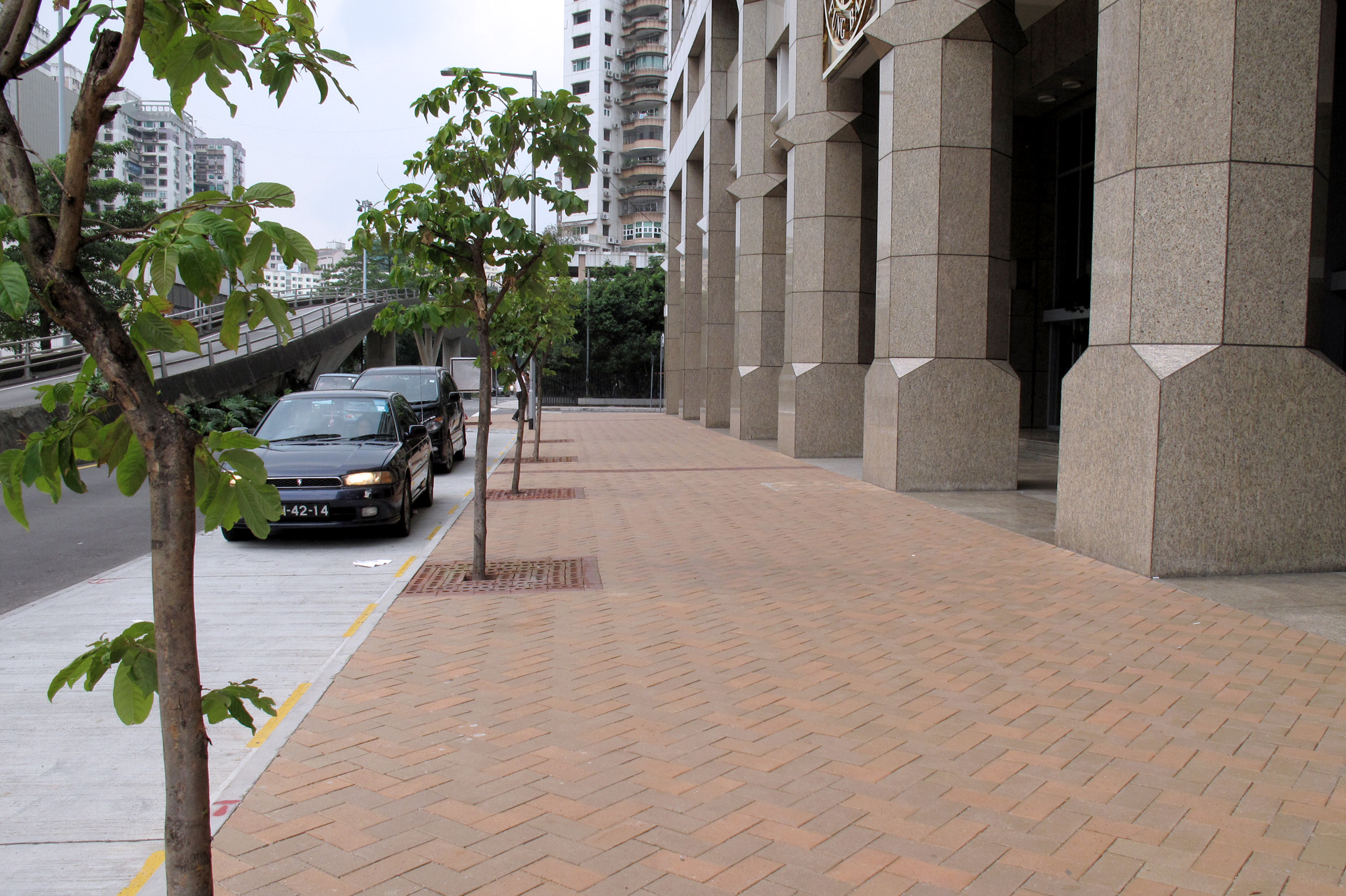 外港新填海區道路整治工程由本年二月展開,為減輕工程對交通的影響,土地工務運輸局因應路面狀況,將工程分十二區進行,其中位於栢林街、及部份冼星海大馬路、馬濟時總督大馬路、巴黎街和宋玉生廣場的整治已完成。路面高度已按原設計水平提升約四十公分,與相鄰的樓宇地台高度一致,行人路已改用防磨及防滑地磚,除美化工程外,區內樓宇與公共渠網接駁沙的井已重新鋪設,改善了區內的排水系統。