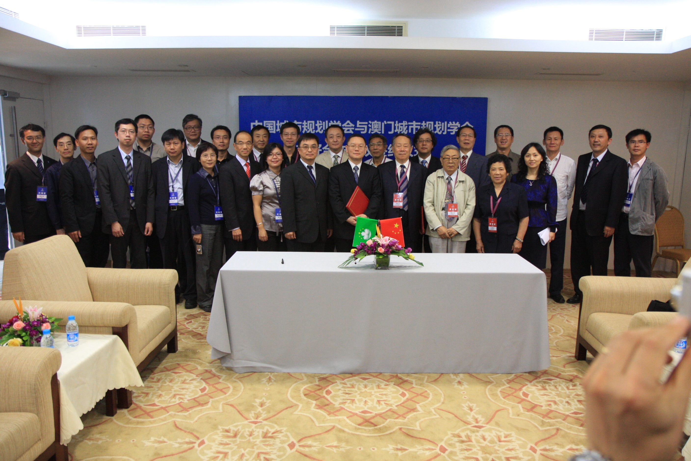 在年會期間,中國城市規劃學會常務副理事長鄒德慈與澳門城市規劃學會會長崔世平共同簽訂了兩個規劃學會的合作協議。中國城市規劃學會理事長周干峙,住房和城鄉建設部城鄉規劃司司長唐凱、計劃財務與外事司司長何興華,中國城市規劃設計研究院院長李曉江,中國城市規劃學會秘書長石楠,以及其他領導等出席了兩個規劃學會的合作協議簽署儀式。