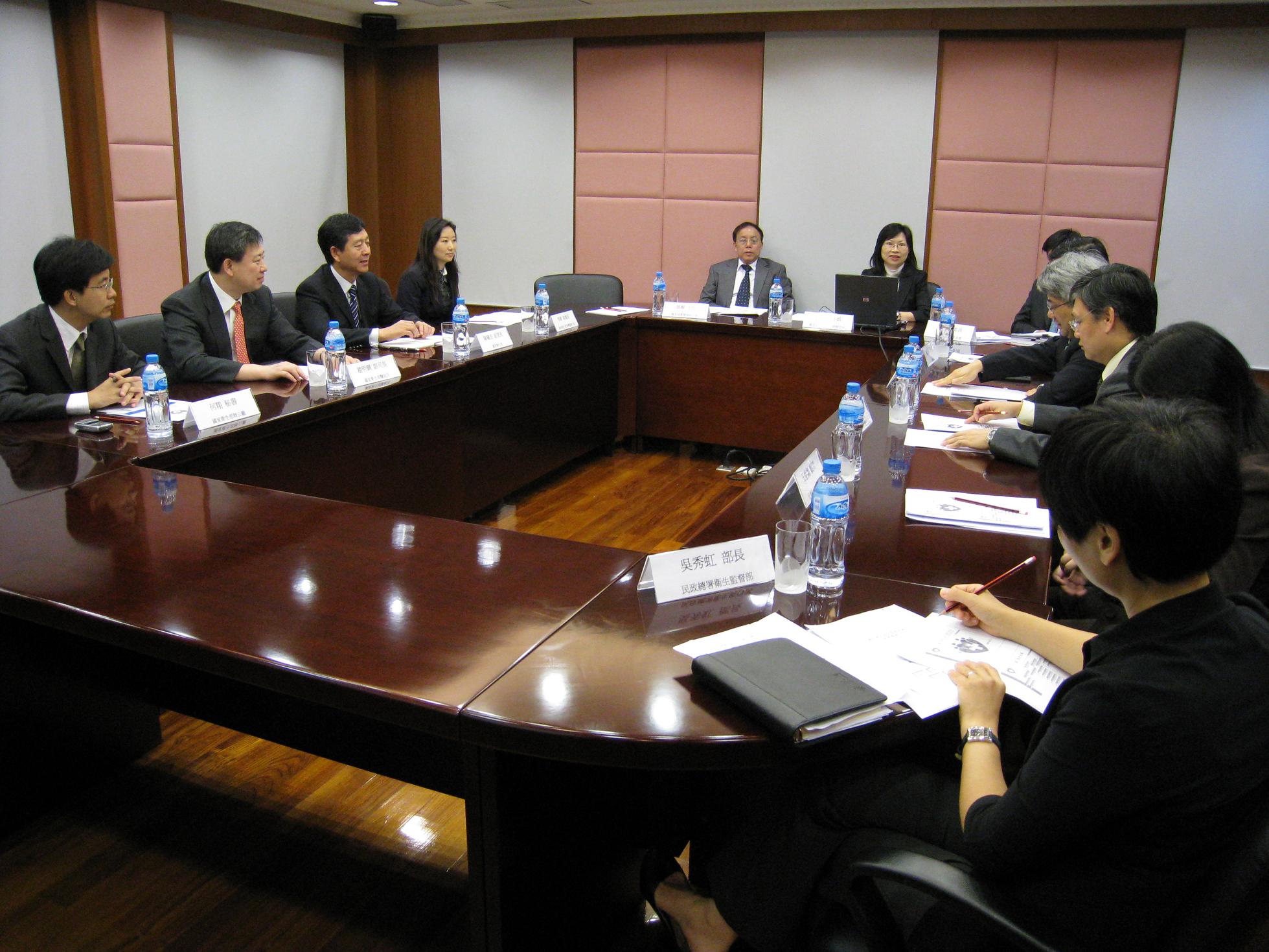 23日中午,社會文化司司長辦公室主任譚俊榮會見了陳嘯宏副部長以及其他代表團成員,包括衛生部醫政司副司長趙明鋼、衛生部港澳臺辦公室副處長李維、衛生部辦公廳秘書何翔。