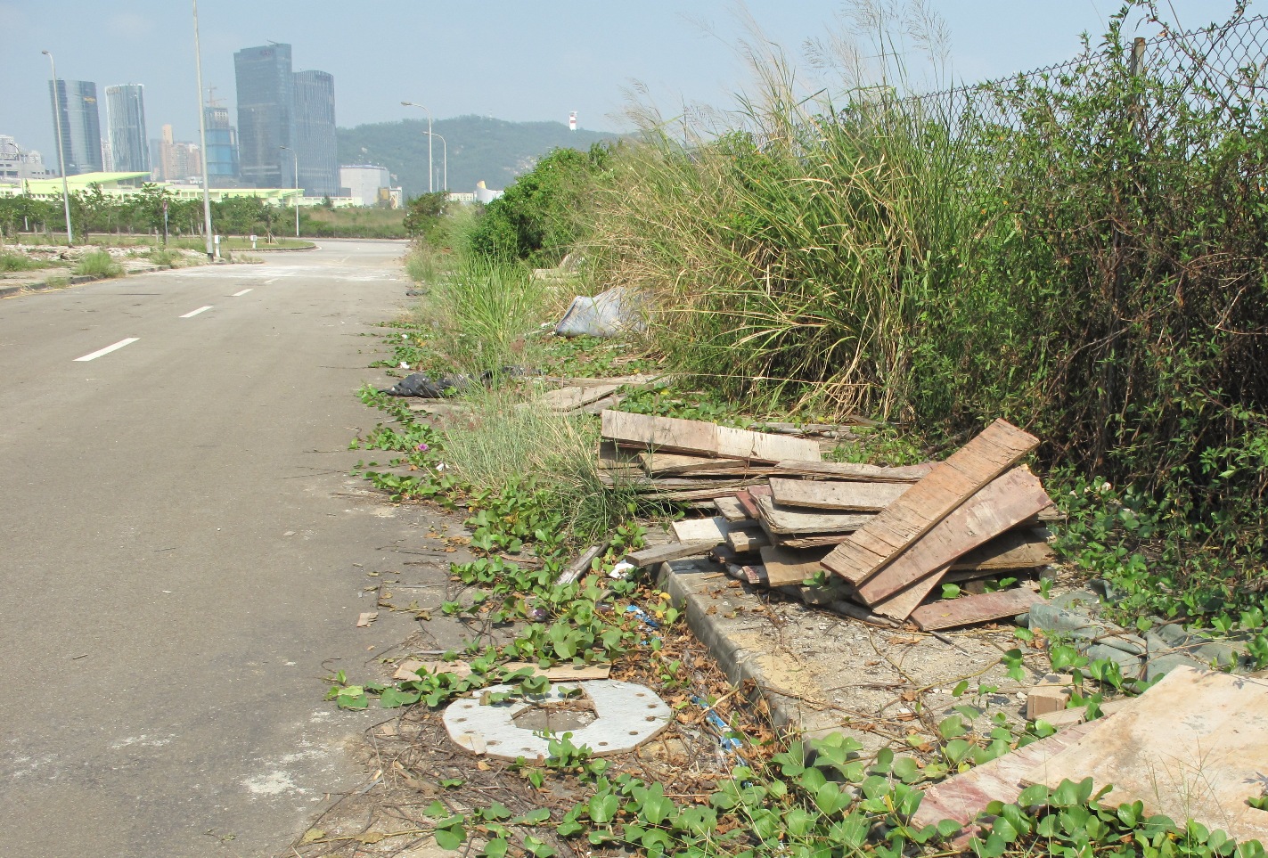 該幅被佔用的政府土地位於路環電廠街及其旁側的土地,被佔面積約五千平方米。由於早前政府刊出告示後,佔用人已自行陸續清走擺放在行車通道、行人路以及路旁的政府堆填區綠化地上的貨櫃、履帶式起重機、挖泥機、推土機、大量金屬工字鋼、石板、建築設備及材料等物品。相對於政府未刊登告示前佔地上擺放大量建材的惡劣情況,今日現場僅留下為數不多的雜物和垃圾。