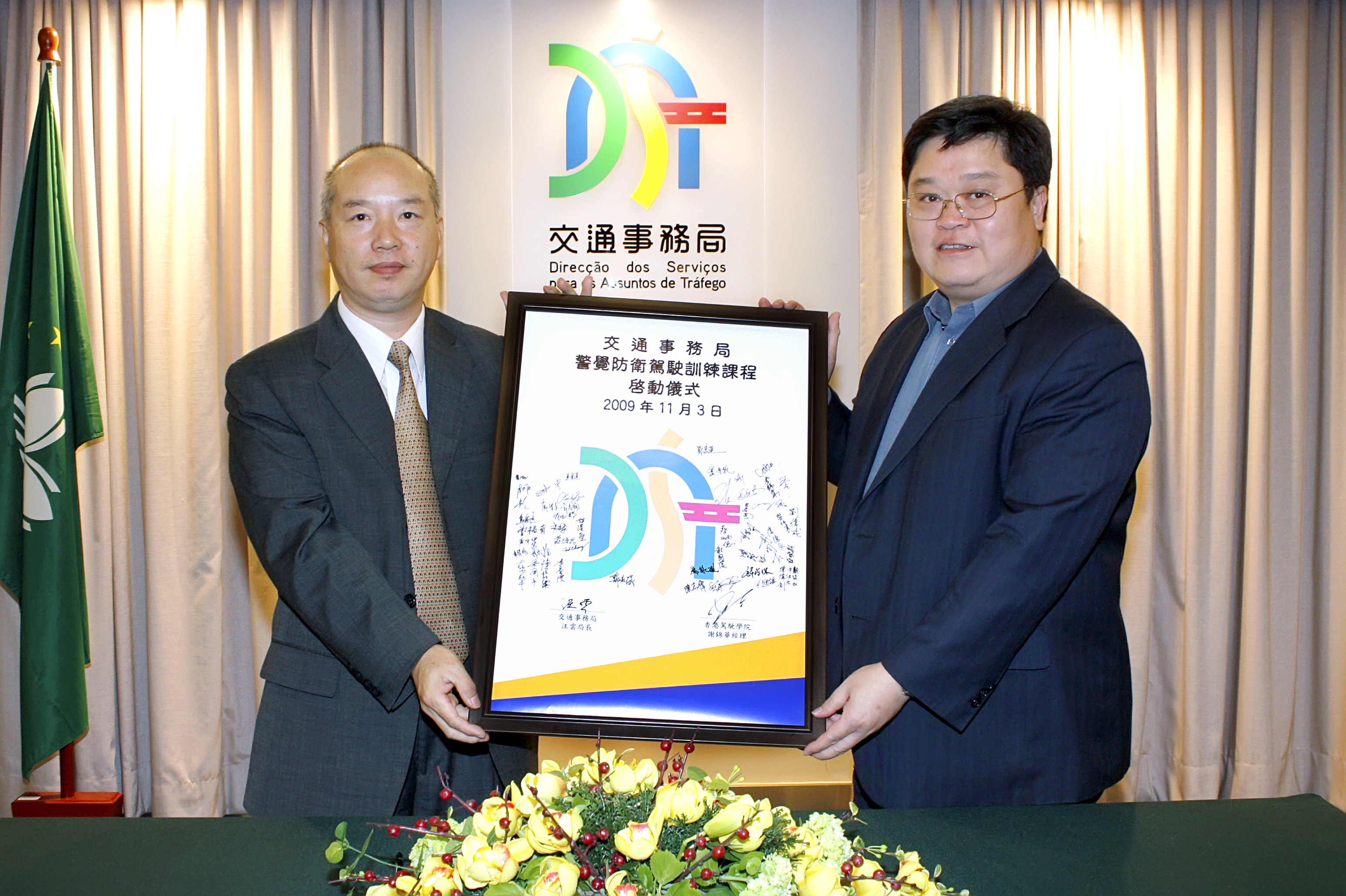 「警覺防衛駕駛」課程的啟動儀式由交通事務局局長汪雲、香港駕駛學院車隊培訓及發展經理謝錦華等共同主持,汪雲在儀式上致詞表示,交通事務局成立至今,一直秉持「致力構建安全、暢通、環保以及方便出行的交通體系」的目標。要達到這些目標,人的支持參與至為重要,作為管理本澳陸路運輸事務的專責部門,同時肩負著宣傳交通安全的責任,局方希望從自身做起,以正確的駕駛態度為居民樹立榜樣。