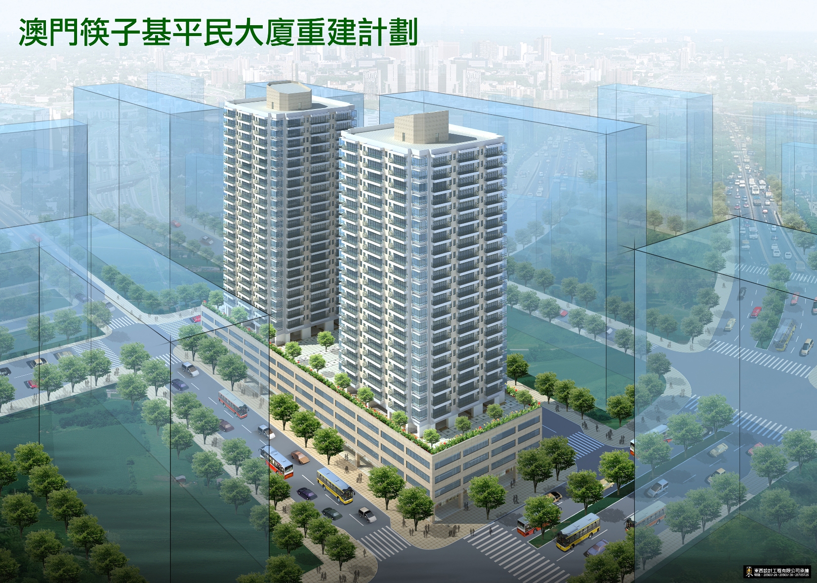 重建項目還包括建造2層地庫的公共停車場,提供約200個輕型車輛泊位及200個電單車泊位;地面層作商業用途,約有1,850平方米實用面積的商舖;裙樓1至2樓為社會設施用途,合共實用面積約為5,550平方米,具體會視乎該區居民的需要而配置相關設施;3樓為架空的綠化休憩平台,為居民營造一個舒適的生活環境。