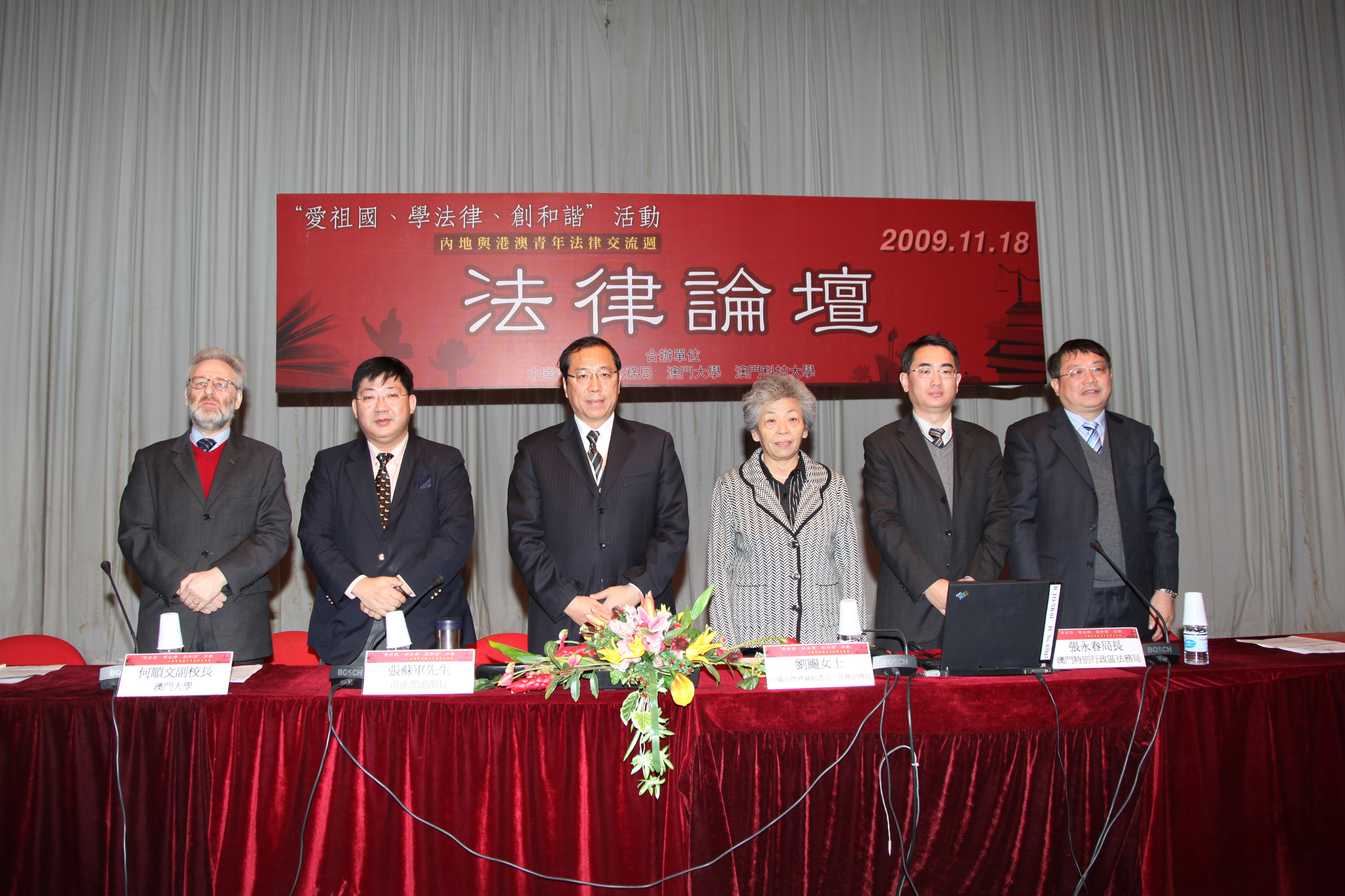 交流團一行六十人,在團長中國法學會黨組書記、常務副會長劉颺女士,副團長司法部副部長張蘇軍先生,另一副團長兼秘書長、中國法學會辦公室主任劉劍先生的率領下,於11月16日到達澳門,並於翌日拜會了行政長官,以及參觀了立法會和檢察院等,昨日還參觀了澳門特區法院。