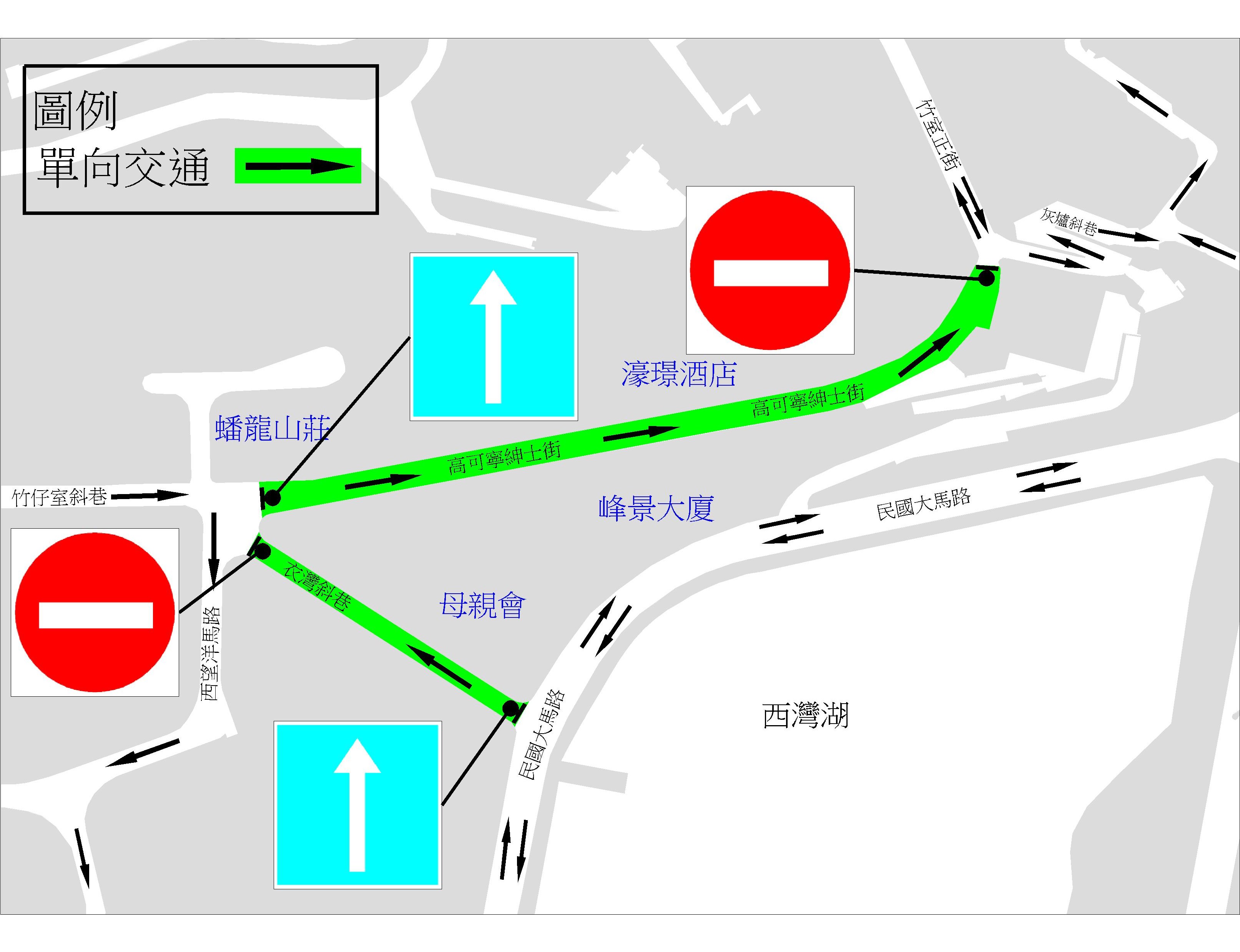 民政總署將於高可寧紳士街及衣灣斜巷進行重鋪瀝青路面工程,配合工程施工,下周一(30日)上午10時起,上述兩路段將臨時改作單向行車,並禁止車輛停泊,工期約3日。待工程完成後,將恢復原來的交通安排。
