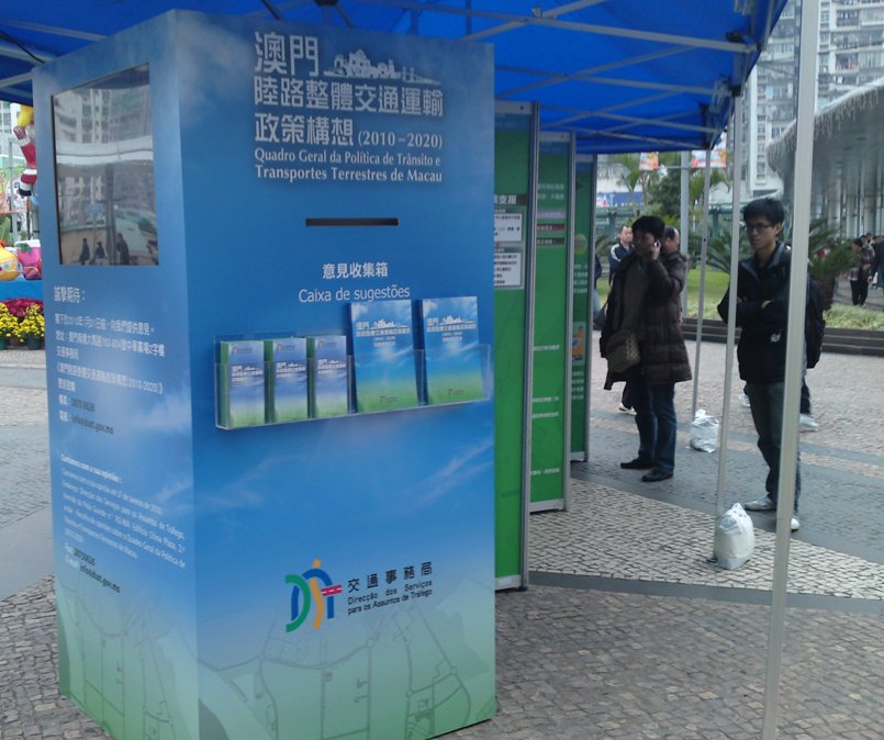 “澳門陸路整體交通運輸政策構想(2010-2020)”現正公開徵集意見,為加深公眾對交通政策構想的認識,交通事務局由今(4日)起,先後於六個地點舉行巡迴展覽,讓居民進一步了解整個政策構想的內容。