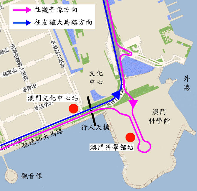 為配合澳門科學館對外開放,交通事務局於科學館前設置巴士站,並由本月25日(星期一)起投入運作,屆時沿外港往觀音像方向的3A、8、10A及12路線將途經此站,以方便市民和遊客前往科學館參觀。