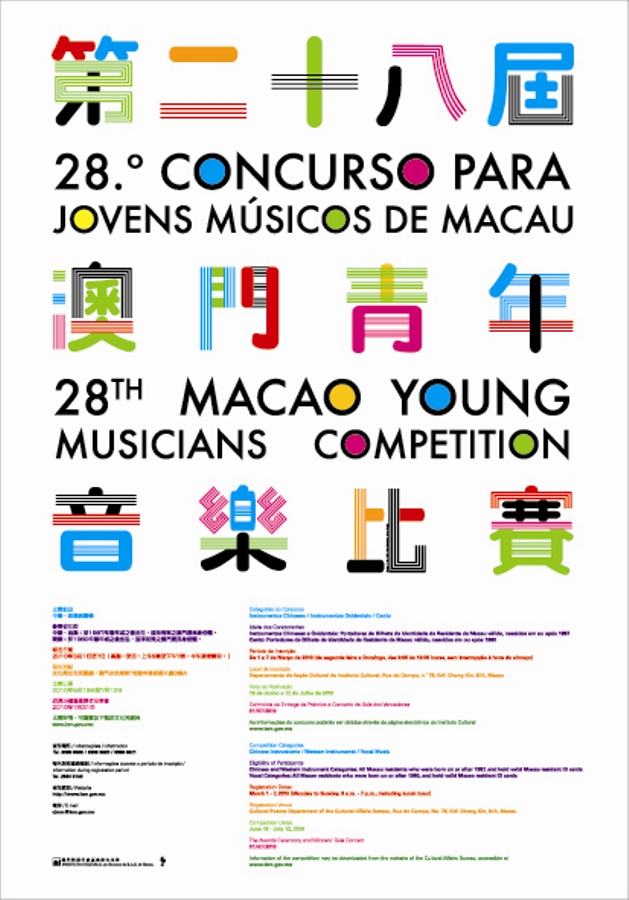 由文化局主辦的第二十八屆澳門青年音樂比賽3月1日至7日接受報名,地點為水坑尾街78號中建商業大廈8樓A座文化局文化活動廳,報名時間為每日上午9時至下午7時,中午照常辦公。