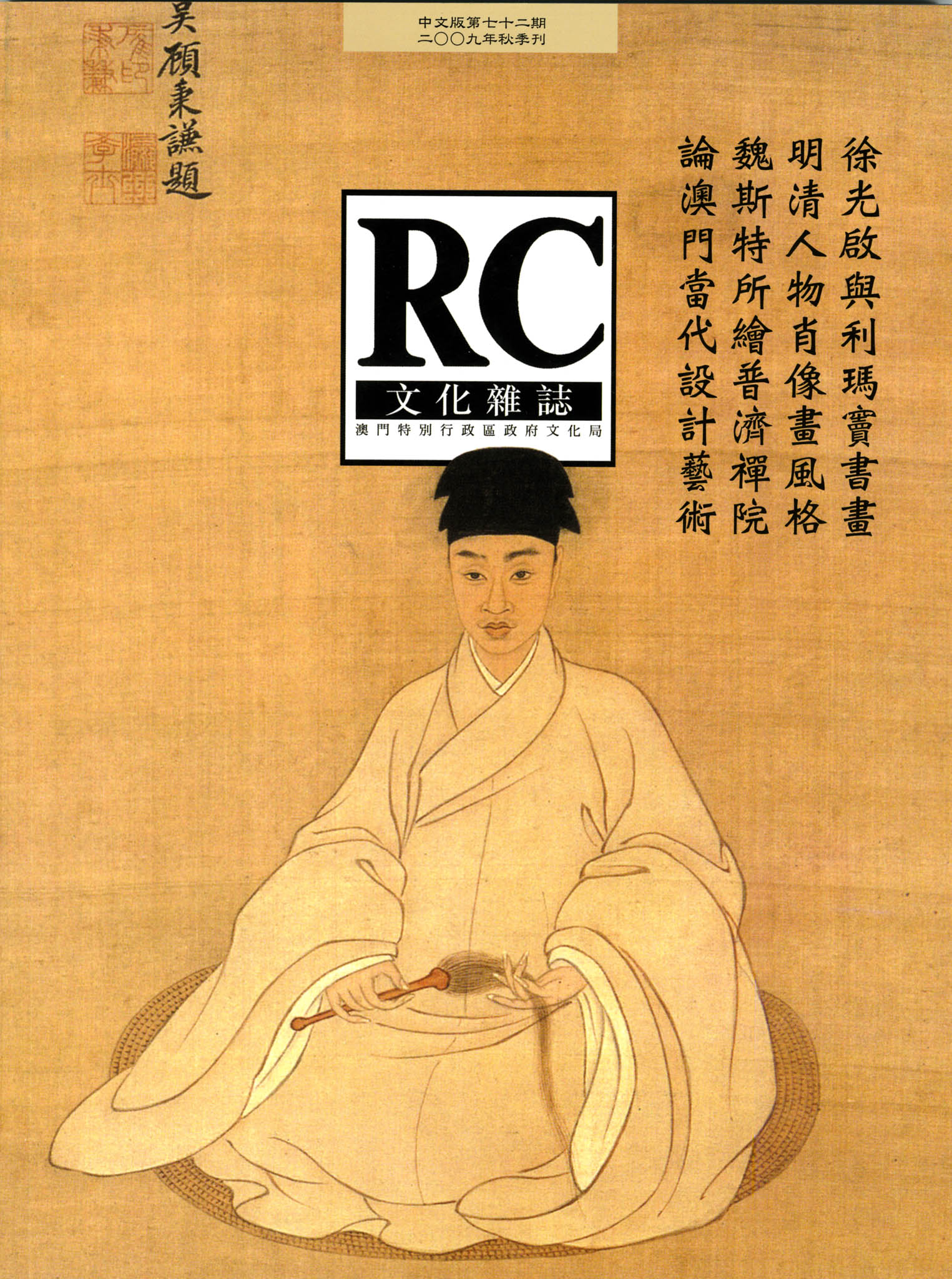由文化局主編出版的學術性季刊《文化雜誌》中文版第72期現已出版發行。今期內容探討澳門藝術史之古今中外論題,收錄了在藝術領域獨樹一幟的中青年專家論稿包括:〈論澳門當代設計藝術〉、〈魏斯特所繪普濟禪院〉、〈明清人物肖像畫風格〉和〈徐光啟與利瑪竇書畫〉等,對研究澳門藝術史具有相當重要的參考價值。