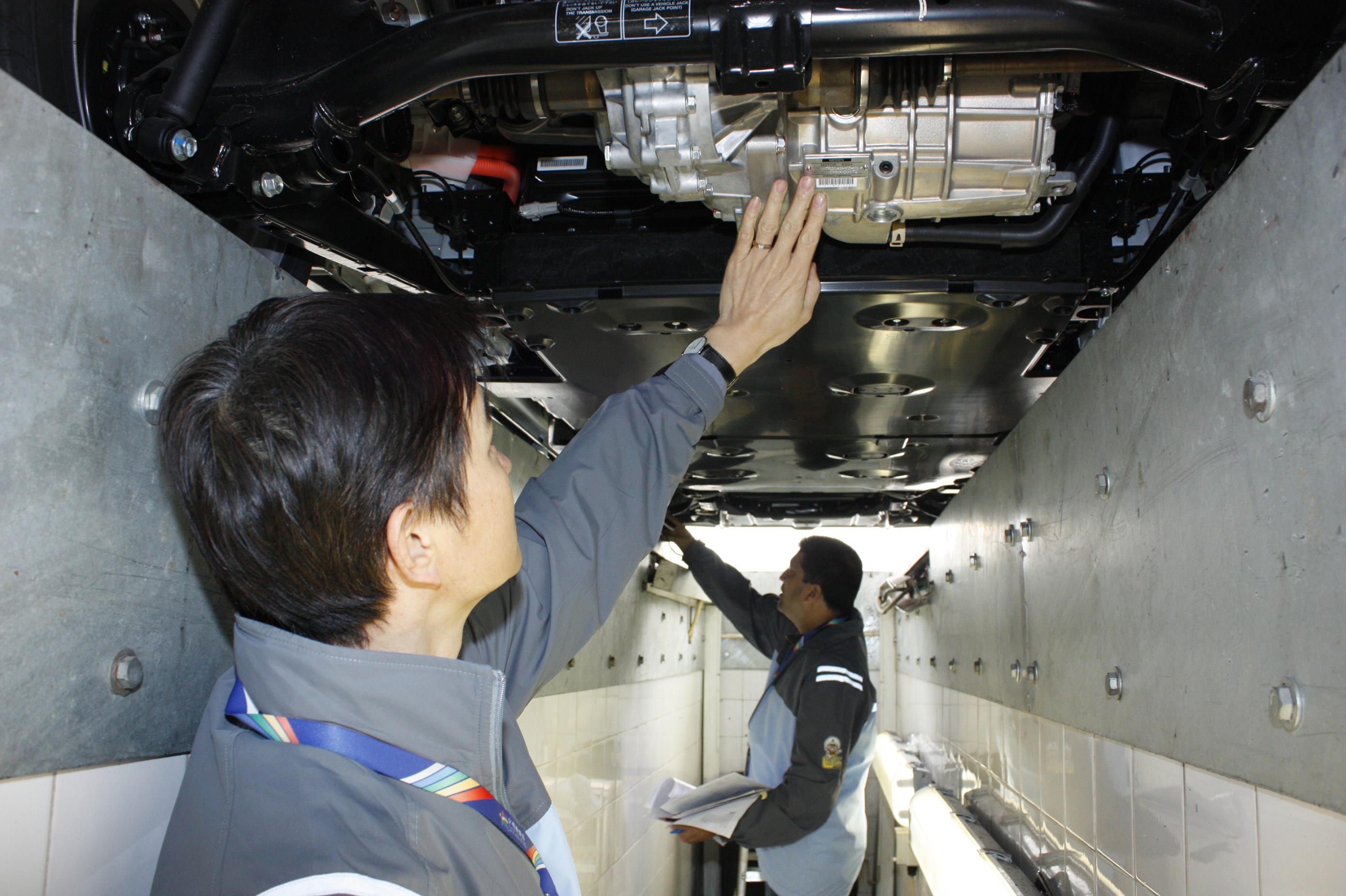 今日下午,交通事務局轄下的汽車檢驗中心為本澳首台通過車輛型號認可的電動輕型汽車進行檢驗,技術人員逐一核對車輛規格資料及車輛技術特徵,並檢查燈光、量度車窗玻璃透光度以及在驗車線設備檢測其行車安全性能(包括側向偏差、懸掛系統、制動系統及底盤結構)及爬坡能力測試,其檢測結果全部合格,同時通過充電系統安全測試,據廠方提交的技術性測試資料顯示,倘車輛遇到颱風水浸時,能自動切斷電源,確保不發生漏電情況。