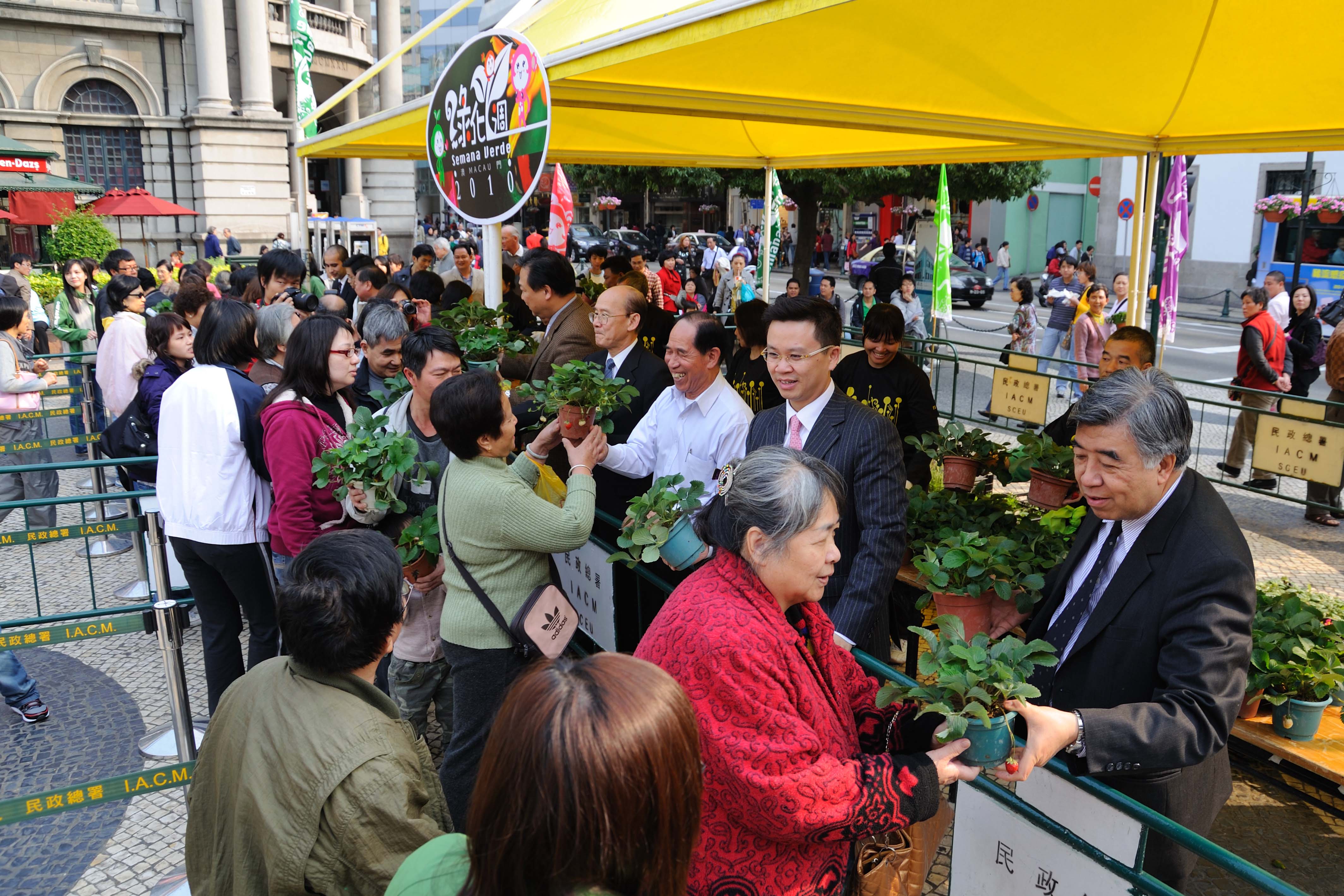 一如以往,今年綠化週期間,民政總署共準備了2600盆植物用於送贈全澳市民,雖然跟整體人口或多或少只能算是杯水車薪,長年以來的一小步,將形成影響全澳的一大步。三月二十日於塔石廣場開幕儀式,已率先安排派送植物800盆,當天己是熱閙非常。三月二十六日議事亭前地下午四時,再次送贈植物盆栽,也引起上千名市民排隊領取。最後一場將安排於三月二十八日綠化週大步行將近結束時發送予參加大步行的參與者,由於每次數量有限,派完即止,對於部分未能領取之市民,在此先請見諒。