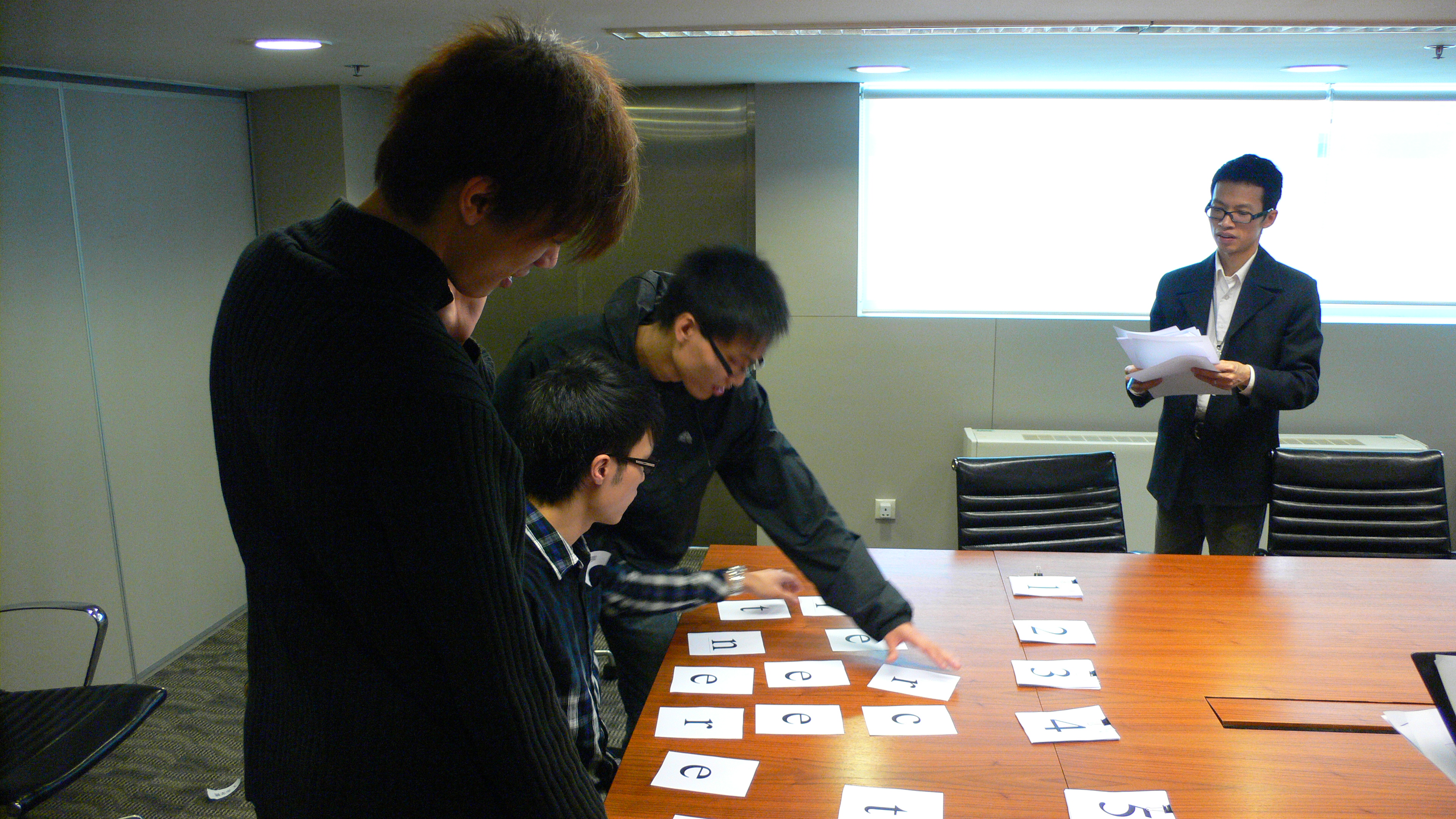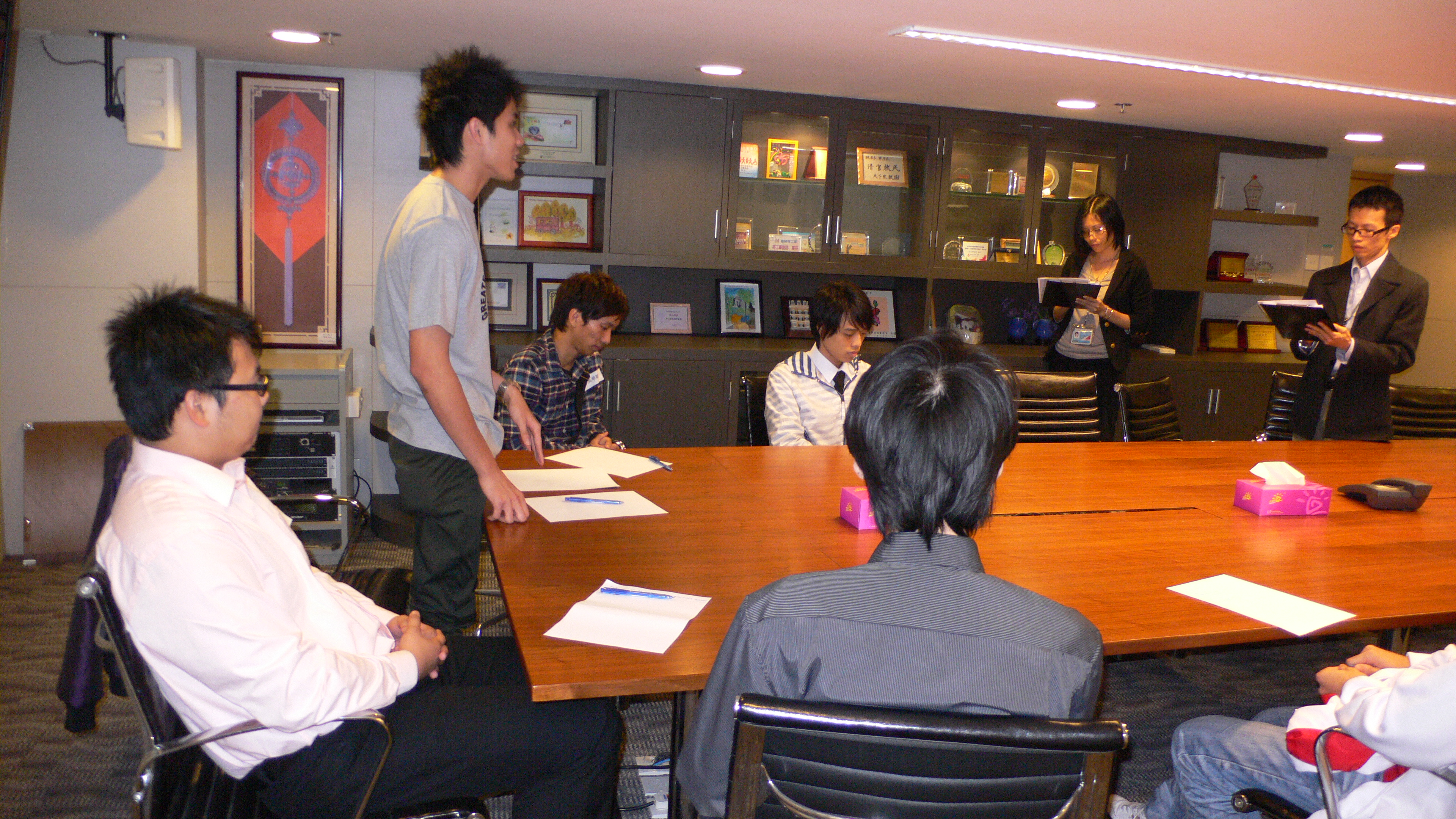 是次工作坊採用了互動性較強之「小組面試」模式進行,就業廳職員因應不同組別之學歷程度,先帶領參與者以新穎的方式作互相介紹,然後進行面試提問、個案分析、小組討論、小組遊戲以及互相講評。由於「小組面試」模式中可供評估的參數眾多,同學們的溝通技巧、語言能力、主動性、合作性、應變能力、記憶力、組織能力及領導才能皆可從中一一發揮,故在小組面試表現較佳者日後亦能在傳統一對一之面試模式中從容應對。