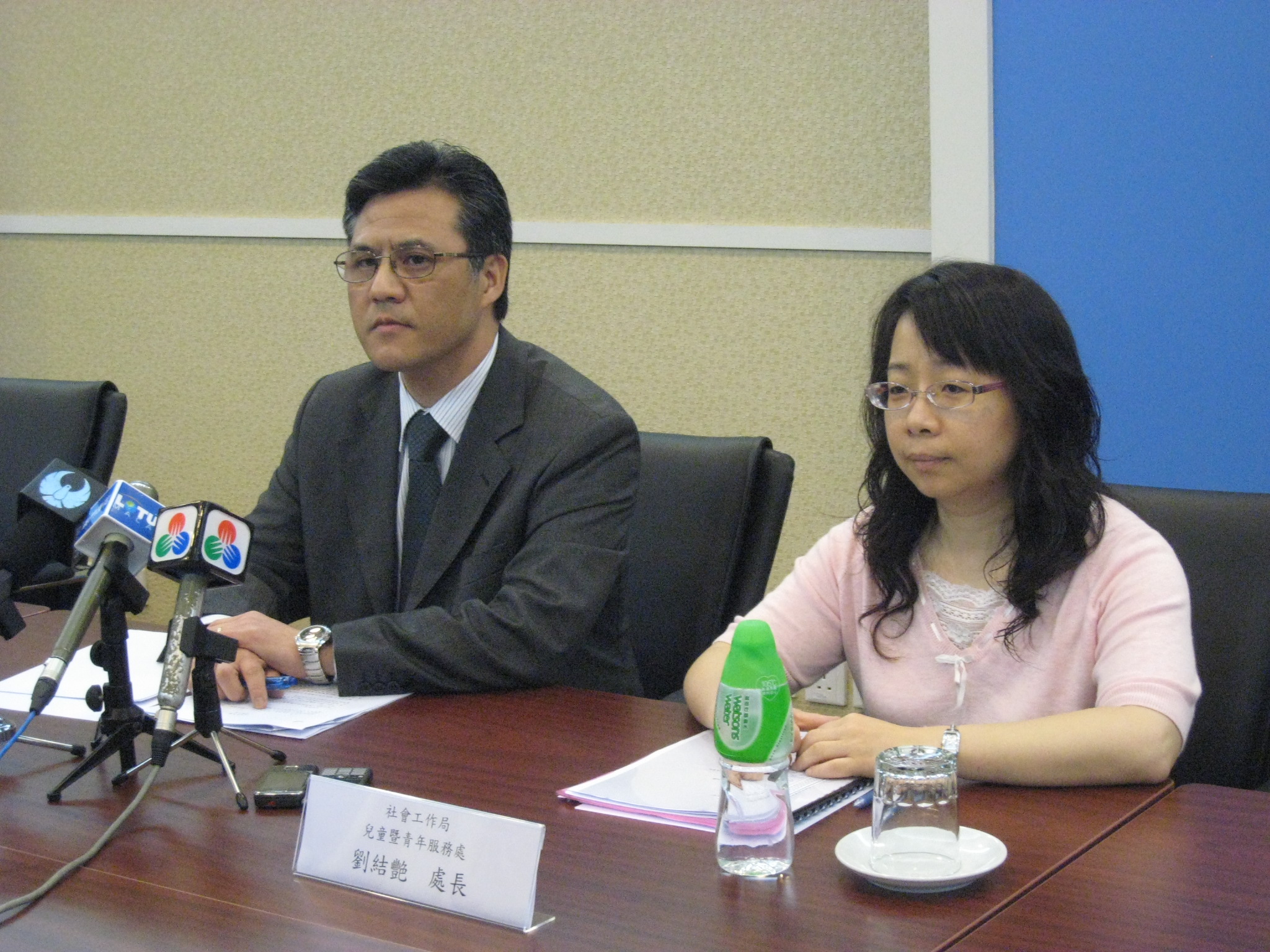 社會工作局葉炳權局長、兒童暨青年服務處劉結艷處長今日(7日)下午召開記者會,就孟智豪夫人托兒所門外有一批市民深宵輪候報名的事件,促請托兒所方面考慮向輪候者派籌或進行登記,但是所方堅稱在下星期一(10日)才啟動報名程序,為此葉炳權局長向輪候的家長表示深切慰問,期望他們的幼兒能夠順利入托。