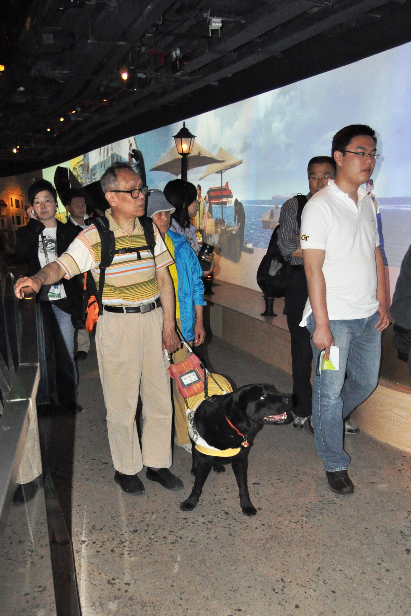 日前,澳門館更接待了首位由導盲犬帶領遊覽的參觀者,整個過程順利,陪同的家屬表示,館內無障礙設計十分體貼,內容精彩,讓他們對澳門有更深的了解,會向其他朋友大力推薦。