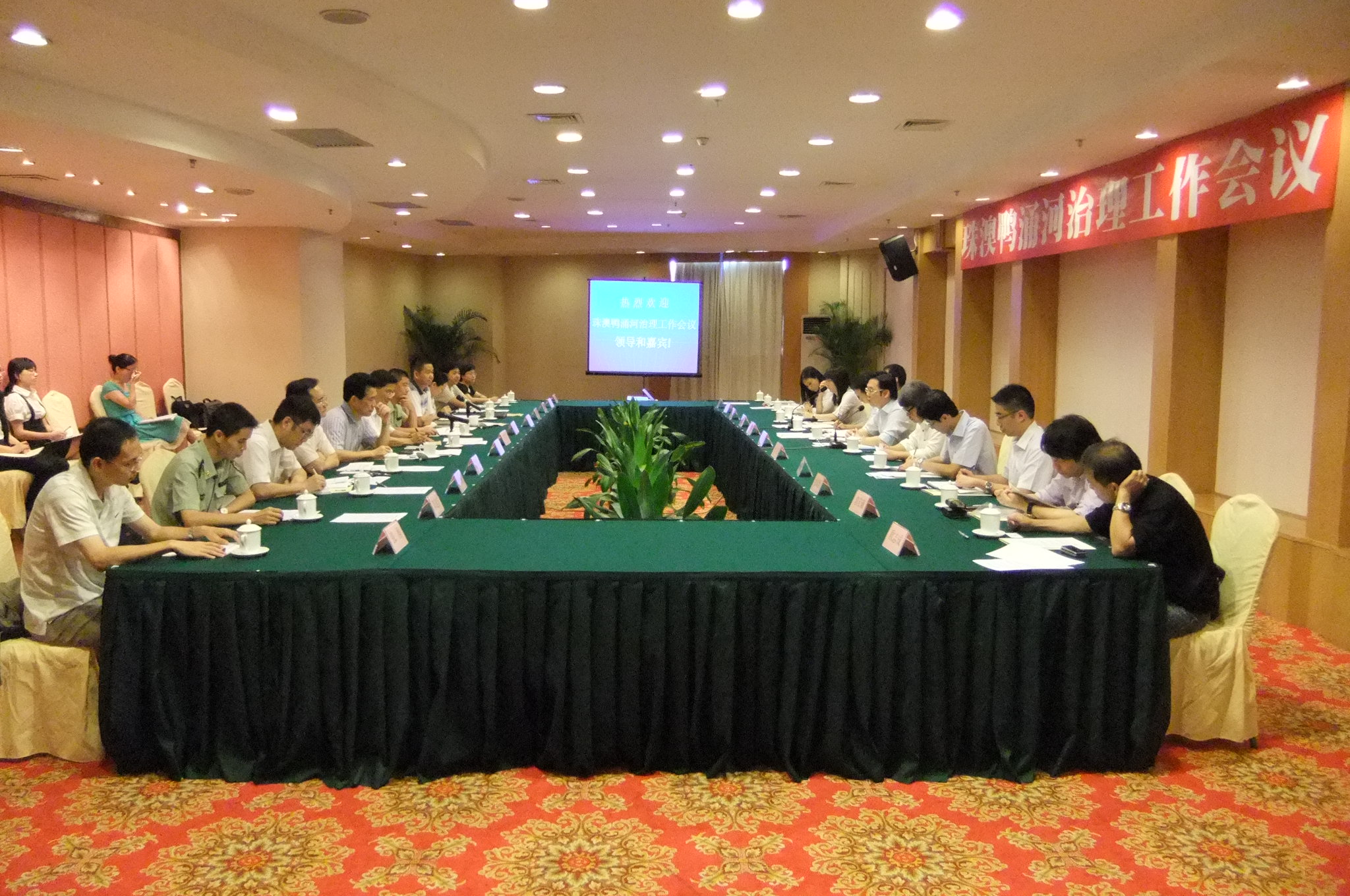 為進一步推進澳門和珠海兩地合作整治鴨涌河的工作,由環境保護局和港務局人員組成之代表團於七月十五日前往珠海,與珠海市環境保護局、市外事局、海洋農漁和水務局、保稅區管理委員會、公安邊防總隊第五支隊等多個相關部門代表舉行工作會議,會上雙方對鴨涌河整治方案的短、中、長期措施交換了意見。