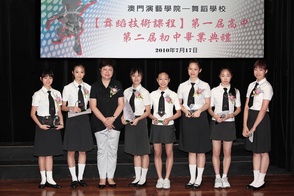 舞蹈學校舞蹈技術課程第一屆高中畢業生升學率為百分百,大部份學生將入讀北京舞蹈學院、香港演藝學院、澳門旅遊學院等著名高等院校繼續學習。畢業典禮上,梁曉鳴及張毅向畢業生及優等生頒發畢業證書及獎狀,王世紅副局長為獲得教青局蓮花獎、李白獎和蔡凌霜獎的學生頒發了獎座、獎狀和獎金。