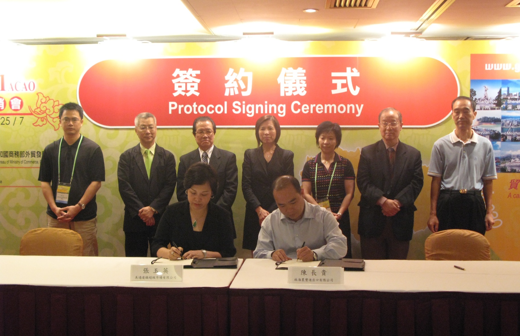 大會今天繼續推動參展企業與採購商直接見面洽談配對,並成功舉辦商業配對160場。今天再促成五份簽署項目,其中有三份為(澳門)美適連鎖超級市場有限公司分別與珠海農豐進出口有限公司簽署的“關於在澳代理‘鄉意濃、生態米、健康產品’銷售意向書”、與廣州市百興畜牧飼料有限公司簽署的“關於在澳代理‘穗香’牌高品質冷鮮肉類銷售意向書”及與廣東翁源縣(香港)金利達發展有限公司簽署的“關於在澳代理三華李及野生水魚銷售意向書”。其餘兩份為金源澳門離岸商業服務公司與鶴山國機南聯摩托車工業有限公司簽署之“銷售品牌電單車意向書”、金源澳門離岸商業服務公司與萬利國際商務有限公司簽署的“銷售單車內外胎套裝意向書”。