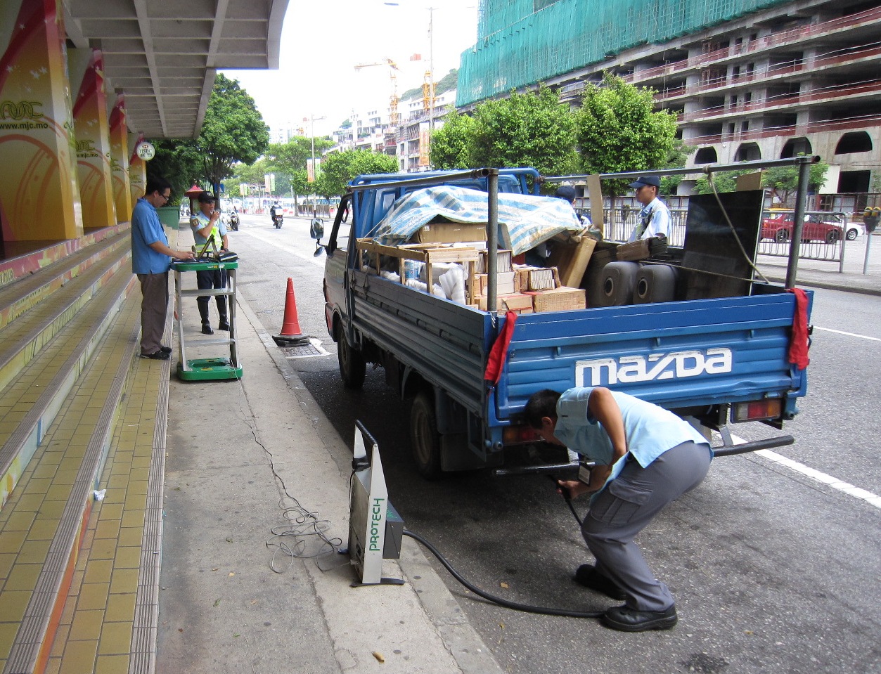 為減少排煙量超過規定的柴油車輛在街道上通行,造成環境污染,同時提升駕駛者對車輛尾氣排放的重視,交通事務局與治安警察局組成工作小組,在今年6月15日開始到公共道路對柴油車輛作尾氣抽檢,除的士、輕型貨車及重型貨車外,亦到巴士站對巴士進行尾氣檢驗。直至8月11日止,已抽檢88部柴油車輛,其中18部排煙量超標,由於現時仍處於緩衝期,交通事務局採取勸喻形式要求車主盡快維修車輛,並即場發出特別檢驗通知書,要求車輛於30天內到汽車檢驗中心進行特別檢驗,到目前為止,有13部車輛已通過檢驗。