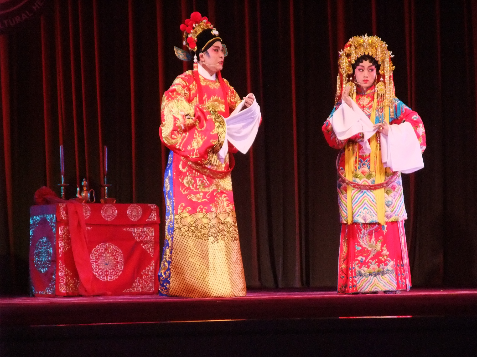 隨後舉行了隆重的證書頒發儀式,由國家領導人頒發26項中國入選《人類非物質文化遺產名錄》和3項目入選《急需保護的非物質文化遺產名錄》證書給相關保護單位。廣東省文化廳非遺處長張梅、香港特別行政區民政事務局長曾德成、澳門特別行政區文化局澳門博物館長陳迎憲在會上獲頒授“粵劇”的《人類非物質文化遺產名錄》證書。