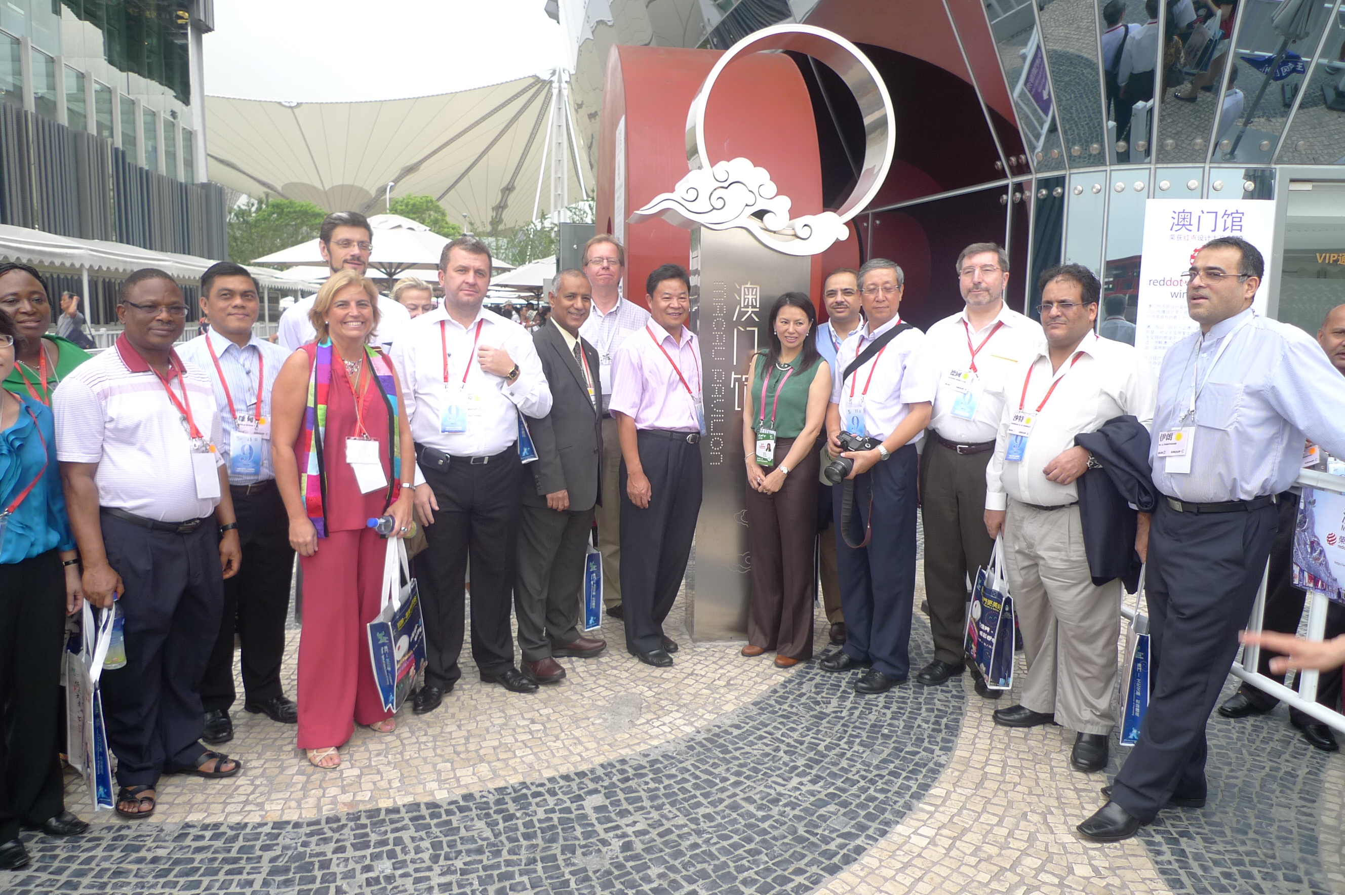 由外交部駐香港特派員公署特派員呂新華、外交部駐澳門特派員公署特派員盧樹民、多國駐港澳總領事伉儷組成的上海世博考察團今(15)日下午參觀澳門館,上海世博澳門籌備辦公室主任楊寶儀陪同參觀。