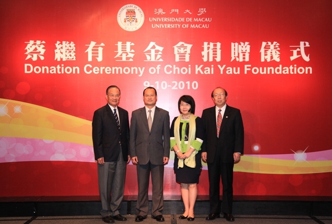澳門大學發展基金會獲香港新華集團主席、澳大校董會成員蔡冠深博士代表蔡繼有基金會捐贈澳門幣三千萬元,該筆款項將用作發展澳大計劃在新校區興建的其中一所住宿式書院,進一步推動實踐全人教育,為澳門本地和國家培養創新領袖人才。