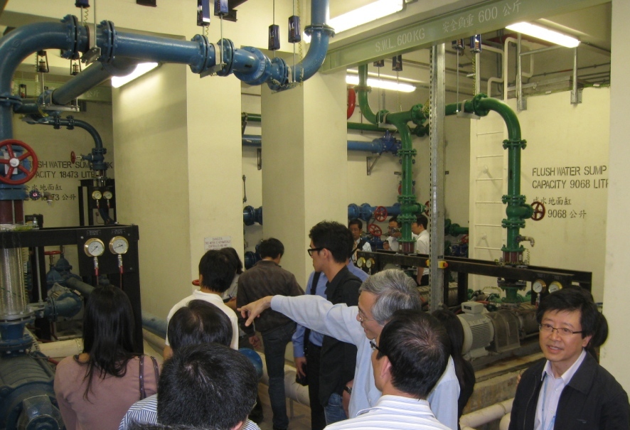 小組亦於下午到位於九龍觀塘的油麗邨四期公共屋邨,參觀雙水缸以及雙管網供水系統。房屋委員會及水務署介紹,應用雙水缸及雙管網供水系統可以在不斷水的情況下完成水缸的清洗工作,在維持供水服務的同時,保障飲用水的水質安全。小組認為該系統相當具有參考價值,未來將會積極研究在澳門合適的新區試行雙管網供水系統。