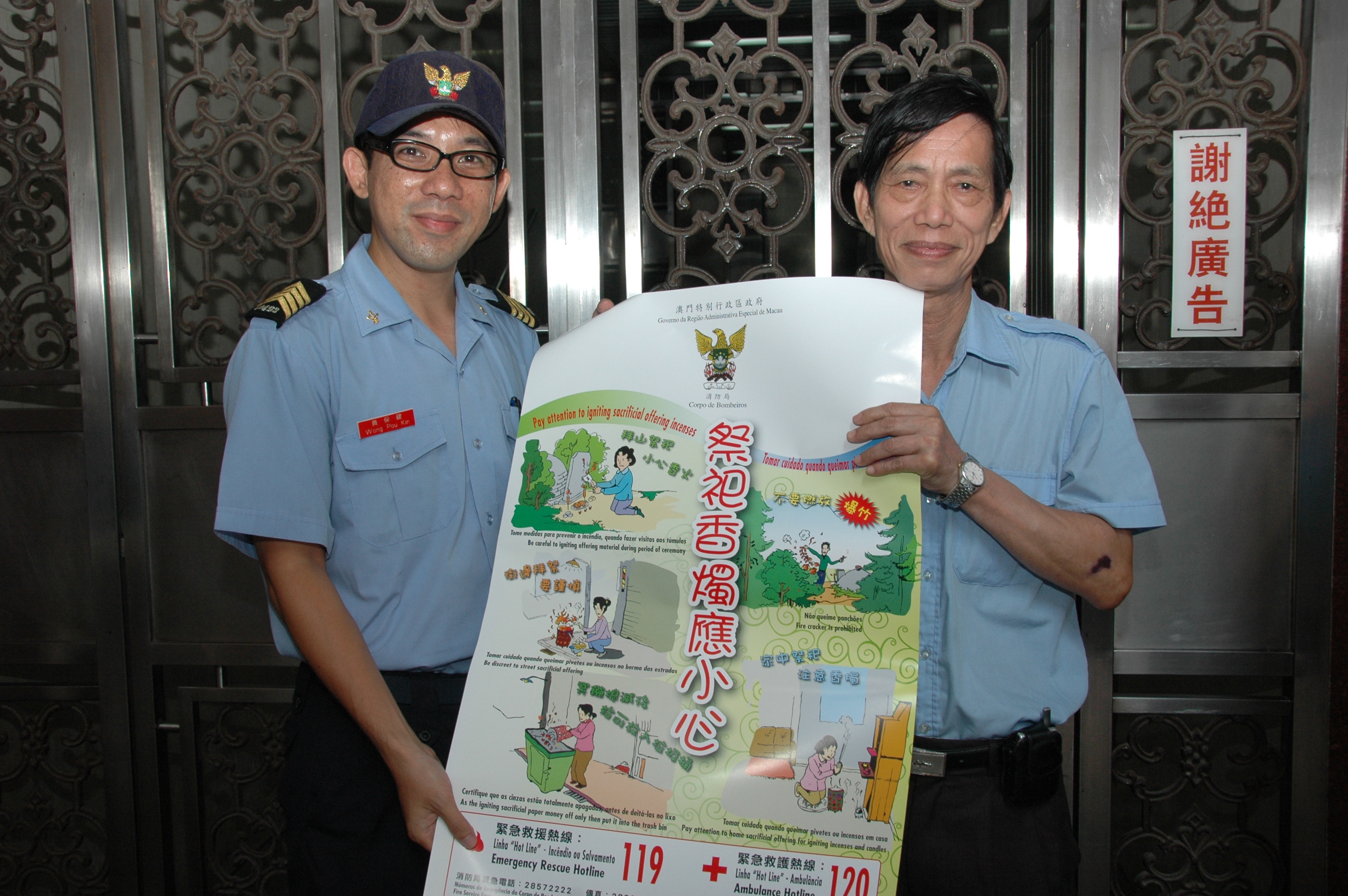 消防局在重陽節期間,加強防火宣傳,並於重陽節當日派出消防車輛針對市民進行祭祀活動的場所進行巡邏,以預防火警。