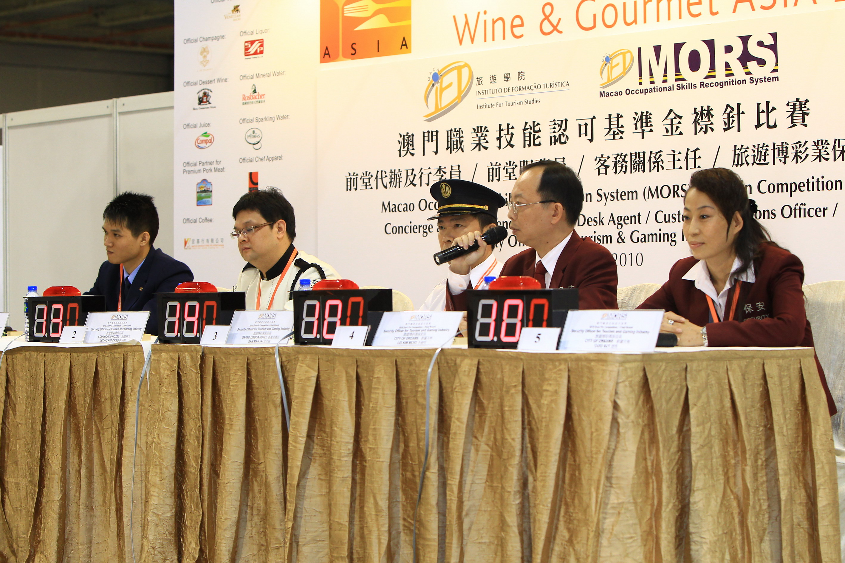 旅遊學院於11月1日舉行『澳門職業技能認可基準』(MORS) 2010金襟針大賽頒獎典禮,由旅遊局局長安棟樑工程師、勞工事務局職副局長林美美女士、酒店業協會會長陳健文先生及澳門酒店旅業職工會會長李寶來先生擔任頒獎嘉賓。