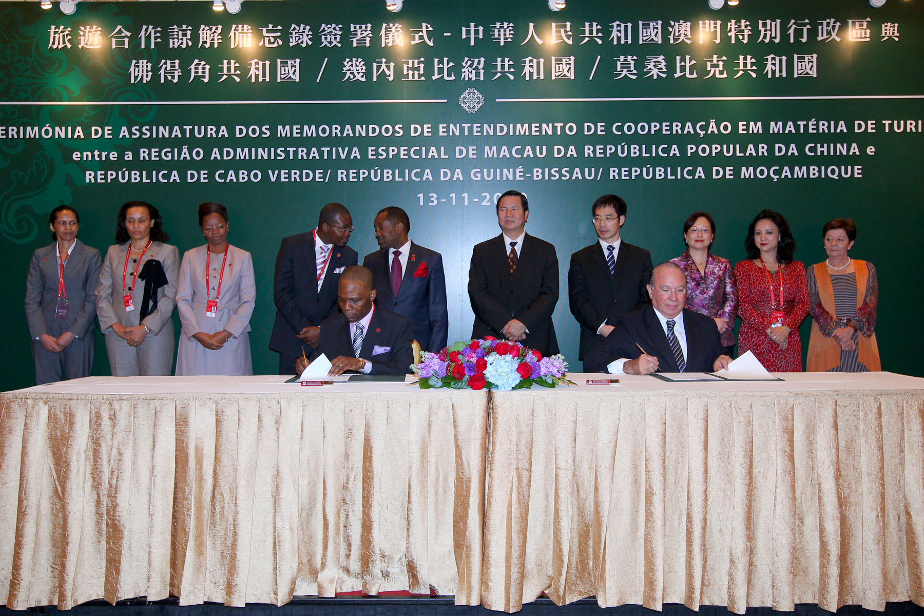 澳門特區政府旅遊局局長安棟樑代表特區政府,分別與佛得角駐華大使儒里奧莫賴斯、幾內亞比紹駐華大使卡馬拉及莫桑比克駐華大使安東尼奧伊納西奧儒尼奧爾,簽署旅遊合作諒解備忘錄,三份備忘錄內容相同。