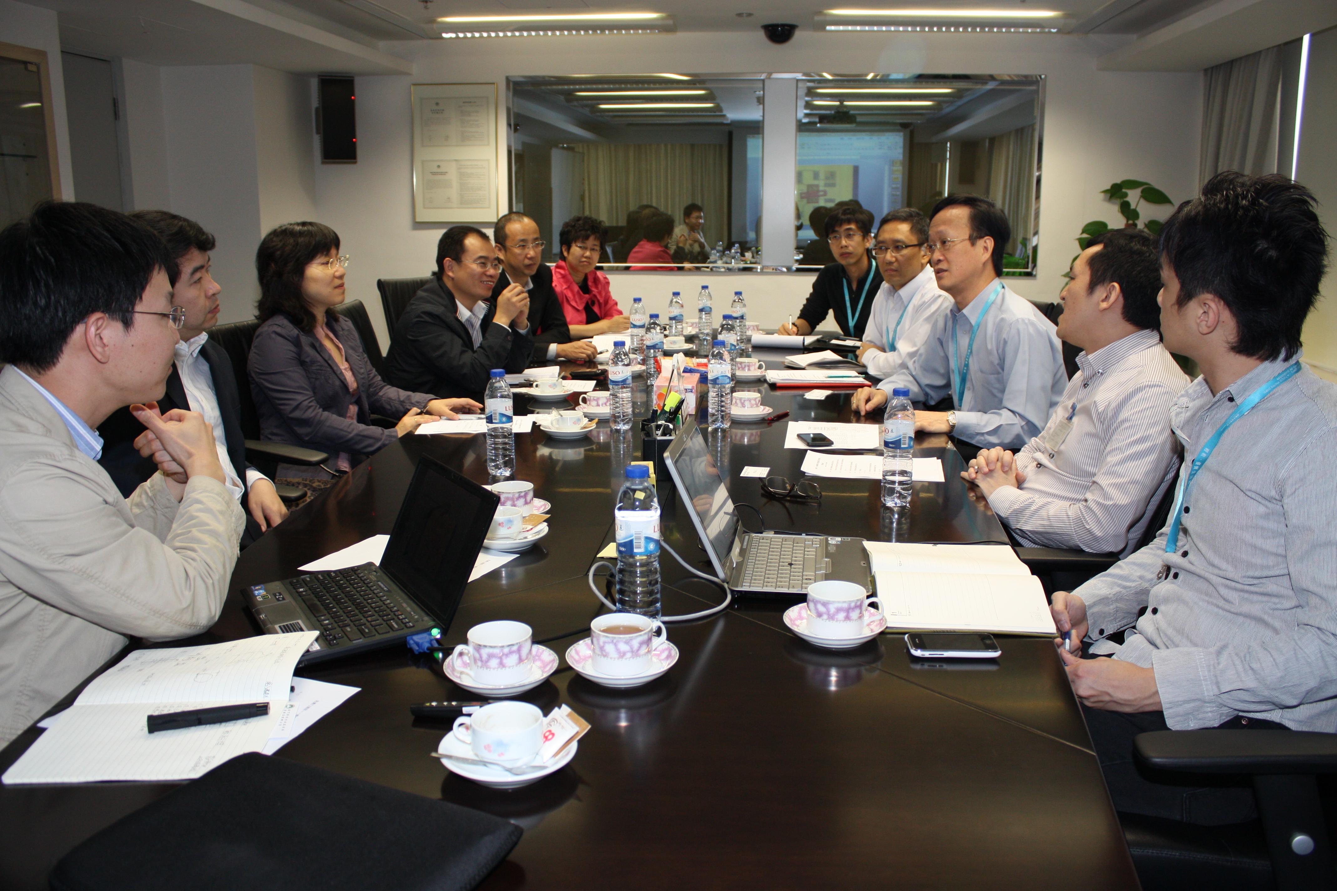 一行人早上先與運輸基建辦公室進行技術交流會議,獲運建辦主任李鎮東、副主任何蔣祺、技術顧問林瑞海、高級技術員黃開榮和梁偉鑾等接待。會議先由運建辦人員介紹澳門輕軌跨境專線的方案,以及蓮花口岸與橫琴之間的軌道交通無縫對接構想,隨後策劃組成員亦介紹了橫琴口岸最新的規劃情況。在熱烈的討論氣氛下,雙方探討了澳門蓮花口岸和橫琴的跨境軌道交通無縫換乘方式、綜合交通樞紐(跨境)概念,並就輕軌線型及通關模式進行了交流。