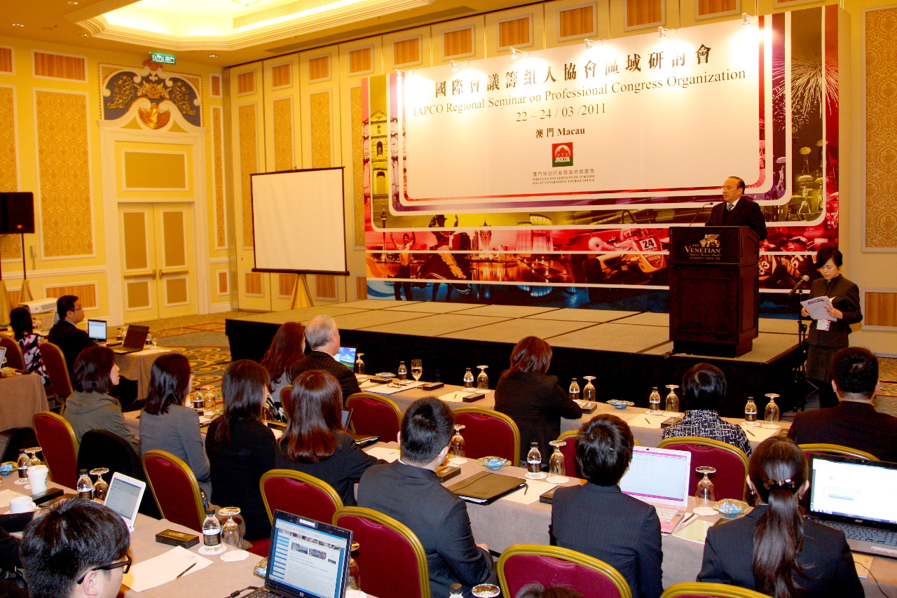 由國際會議籌組人協會主辦,澳門特區政府旅遊局的澳門商務旅遊中心承辦的“國際會議籌組人協會區域研討會”今天(二十二日)在澳門威尼斯人度假村酒店正式揭幕。研討會於3月22至24日舉行,共吸引近40名本澳及亞洲其他地區的業界代表參加。