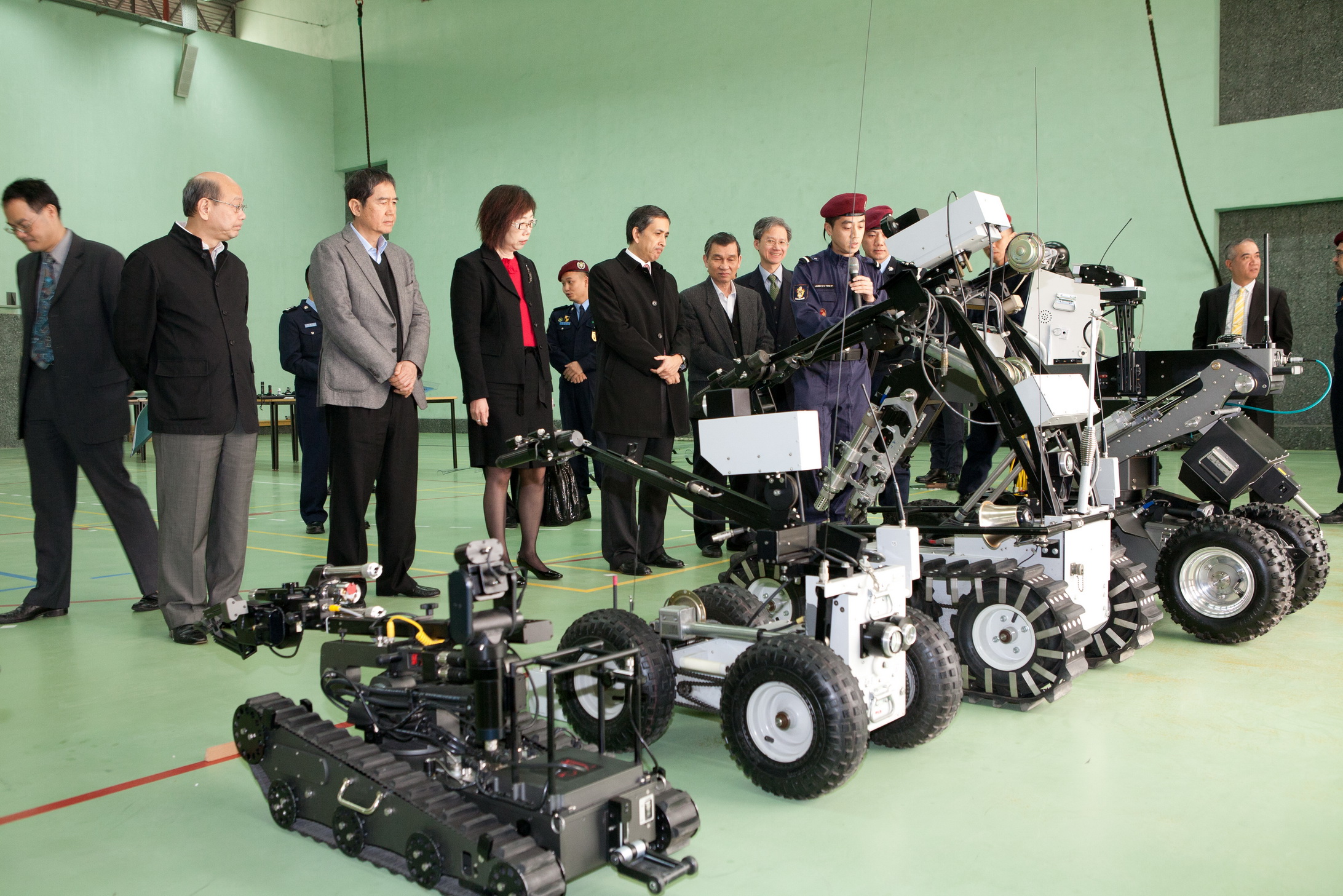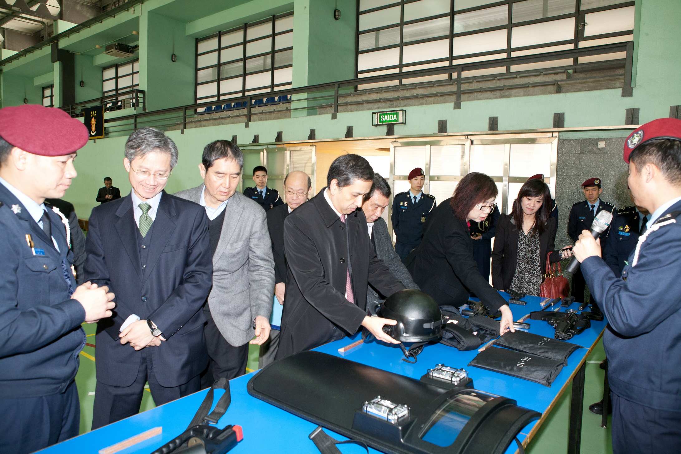 隨後,紀監會成員移師往特警總部參觀。在特警隊隊長梁文昌作部門簡介後,一行人隨即參觀特警隊的武器裝備,包括各種槍械、常規警務裝備、防暴裝備和拆彈器材,期間示範了防暴盾牌在防暴陣式的應用以及伸縮警棍、防彈盾等器械的使用;最後,特警隊更專門安排了警犬作緝毒示範。紀監會成員對有關裝備的展示及相關的工作表現出較大興趣,期間紛紛主動提問,互動氣氛熱烈。