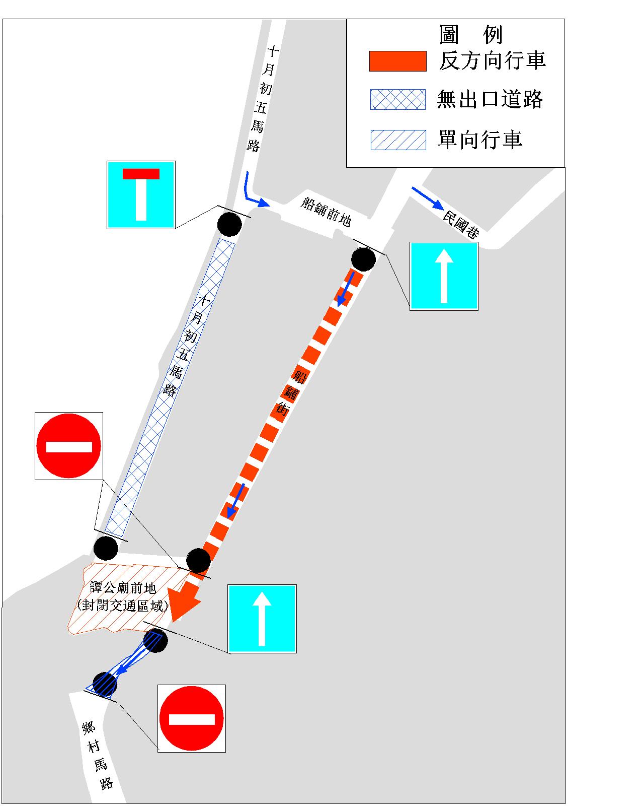 配合路環街坊四廟慈善會於路環譚公廟前地及十月初五馬路舉行譚公寶誕公演粵劇活動,上述兩道路將於(6日)上午11時起實施臨時交通改動措施,為期48日。其中,譚公廟前地將封閉交通,以便進行舞台搭建及拆卸工作;介乎船鋪前地與譚公廟前地之間的一段十月初五馬路將改成無出口道路;介乎船鋪前地與譚公廟前地之一段船鋪街將實施反方向行車,即車輛須由船鋪前地往譚公廟前地方向行駛,以便車輛進入鄉村馬路的通道;此外,介乎譚公廟前地與港務局路環分局之一段鄉村馬路將實施單一方向行車,即車輛只能由譚公廟前地往港務局路環分局方向行駛。
