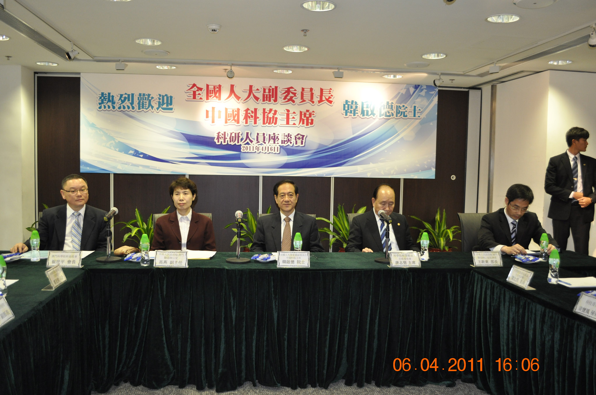 全國人大常委會副委員長、中國科學技術協會主席韓啟德院士代表團一行共6人於2011年4月6日到訪澳門科學技術發展基金,並出席由科技基金主辦、澳門科學技術協進會協辦之“科研人員座談會”,與六十多名來自本澳大專院校、科技團體及機構的科研人員熱烈討論本澳的科技發展狀況和科研項目資助情況。