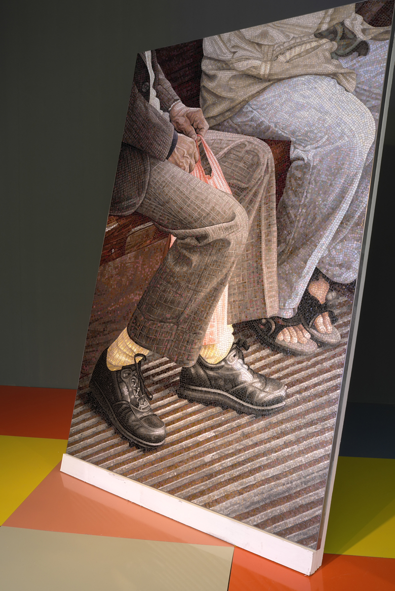 展場中偌大而眩目的霓虹燈裝置作品,讓整個展場增添了無限的想像空間。當觀眾進入塔石藝文館,那奪目的霓虹燈裝置不只作為一個實體展現,虛蕩的倒映同時出現在牆上懸掛的不鏽鋼作品,並與色彩斑斕的地板相互爭妍,使整個展覽空間構成一個夢幻的整體。而在這些扭曲的圖像與幻象之間,又展示埃里克極之寫實的馬賽克作品,使展示空間更富多樣的特性;據埃里克的敍述,他從年青時已對馬賽克深感興趣,他運用旅居美國時所拍攝之照片為題材,以過去表現神聖題材的馬賽克,結合攝影圖像的寫實形式,構成富當代性的馬賽克作品;在這多樣而風格強烈的作品,儼然收藏進塔石藝文館精緻的展示空間之中,供觀眾想象與欣賞,構成夢幻而奇妙的欣賞經驗。