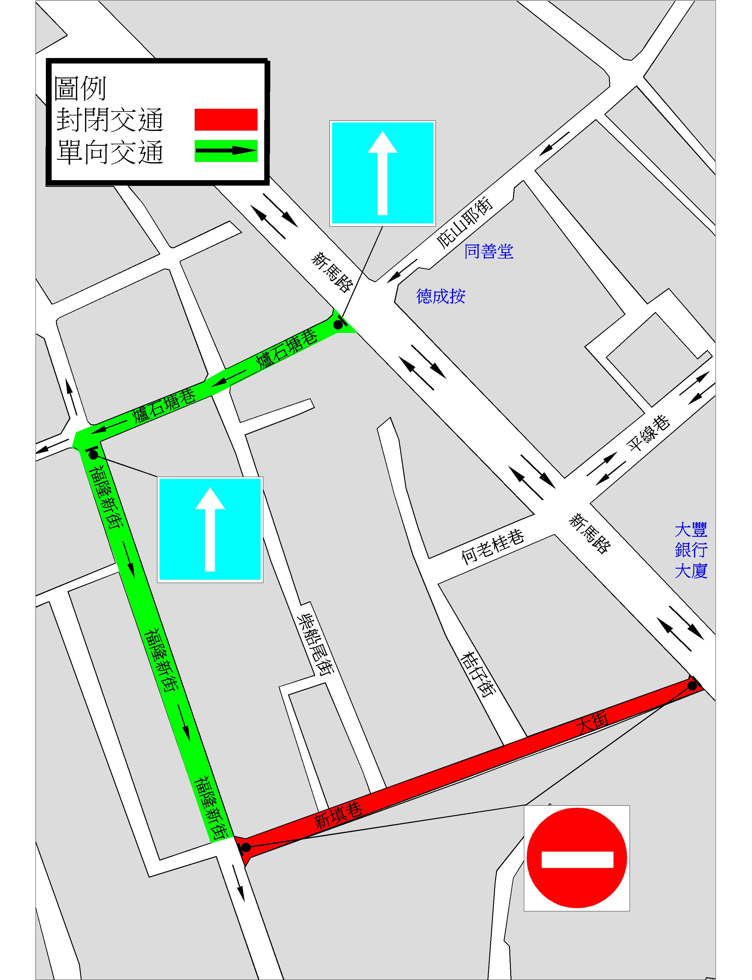營地大街、新填巷、爐石塘巷及福隆新街臨時交通改道