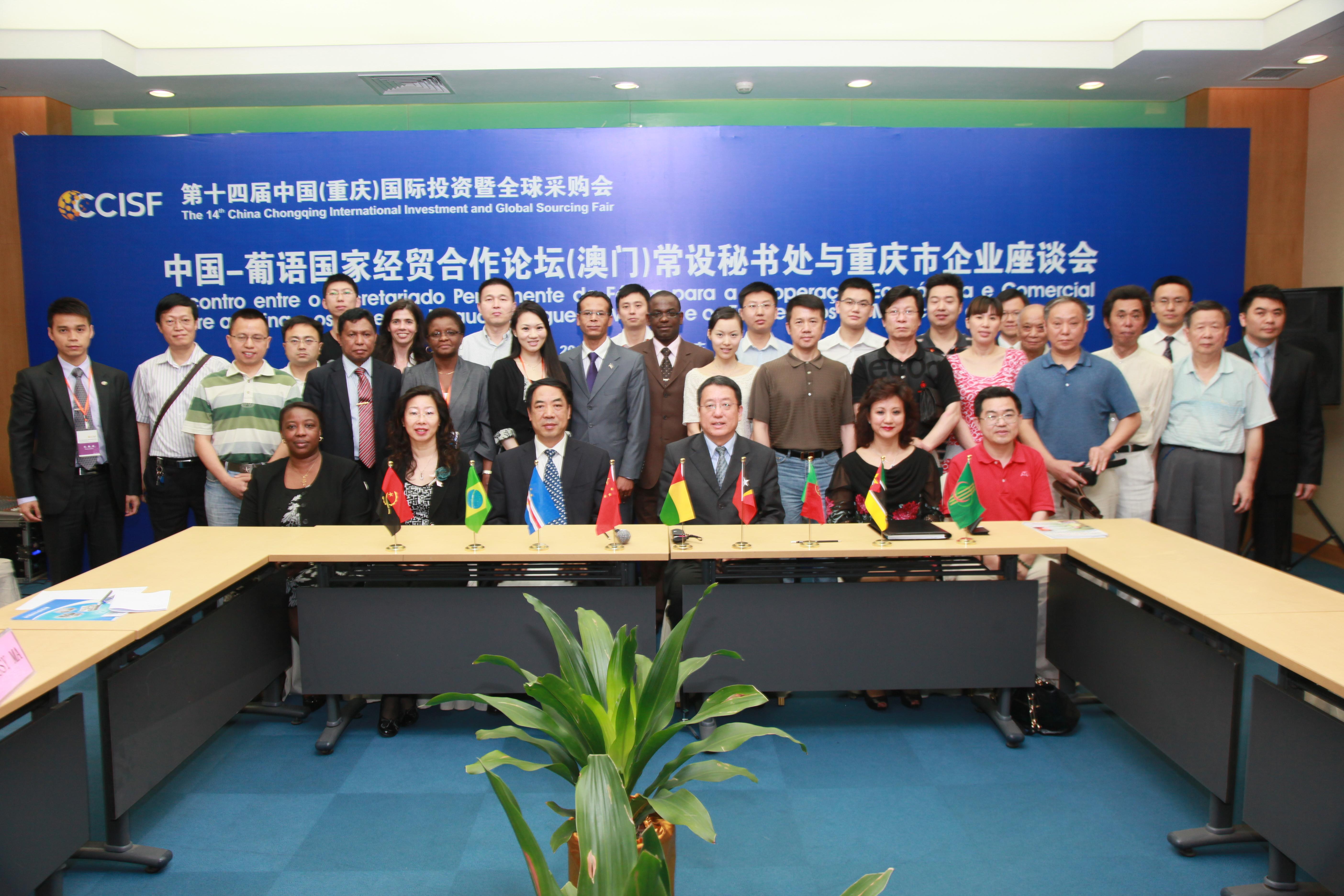 5月20日,由中葡論壇常設秘書處、重慶市對外貿易經濟委員會主辦、重慶市商業貿易投資協會協辦的中葡論壇常設秘書處與重慶市企業座談會重慶國際會展中心舉行。會議由重慶外經貿委副巡視員沈官貴主持,中葡論壇常設秘書處代表團和30多家重慶市企業代表參加座談會。