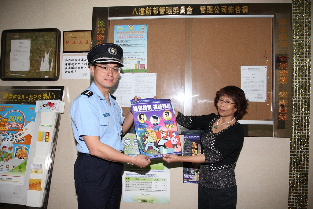 陳溥森主任首先對本局近年在警民合作方面所做的成績表示肯定,隨著社會變遷,各種犯罪例如非法旅館、盜竊、毒品等顯然已滲透到大廈,加上外來人士增加,不同文化背景人士混雜,對居民的生活構成影響,希望本局有系統地加強防治大廈罪案的工作。
