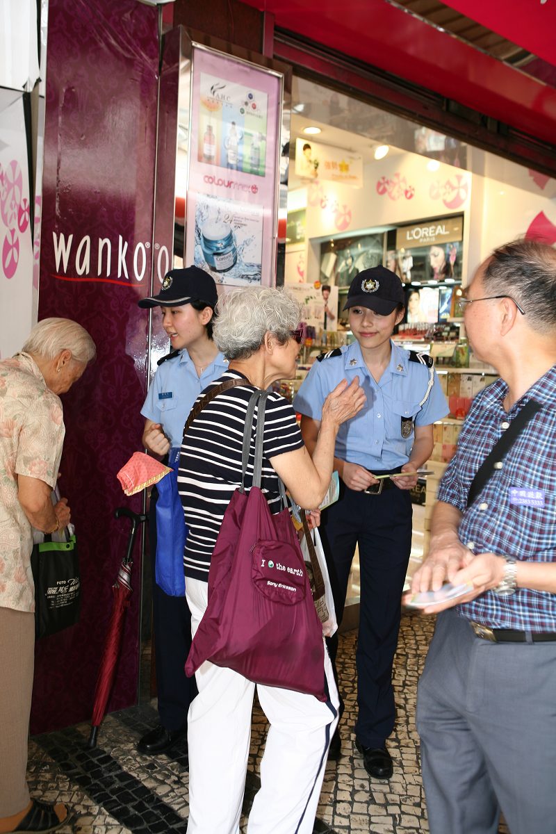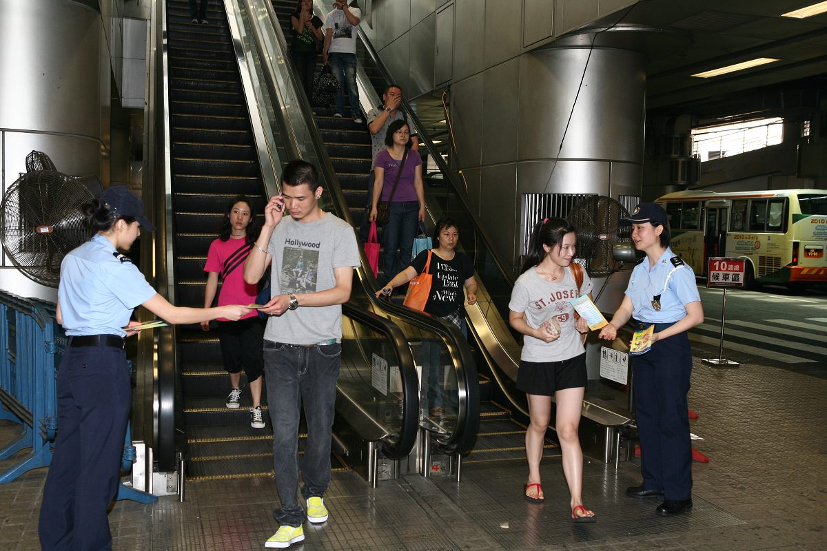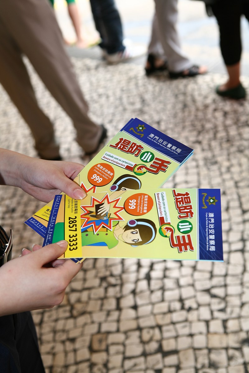 今天早上11時30分,本局公共關係處源劍鋒副警司及鍾倩怡副警司、連同第一警務警司處馮長全副警司到新馬路一帶巴士站進行防扒竊宣傳工作,向候車乘客派發“提防小手”小冊子、講解常見的犯罪手法、提醒在乘車或候車期間應注意自身財物的安全,並即場對財物外露的候車人士作出溫馨提示,讓其了解正確的保管財物方法。除此之外,亦向巴士站附近商鋪的店員作出呼籲,若發現可疑人士應立即通知本局處理。其後,宣傳小組人員移師關閘廣場下層巴士總站繼續進行宣傳活動,更在多個站點當眼處張貼防罪海報,以及向各站長呼籲在巴士靠站期間,加強留意形跡可疑的人士,適時提醒乘客注意財物安全,有需要可報警求助。同類的宣傳活動稍後將繼續在離島區進行。