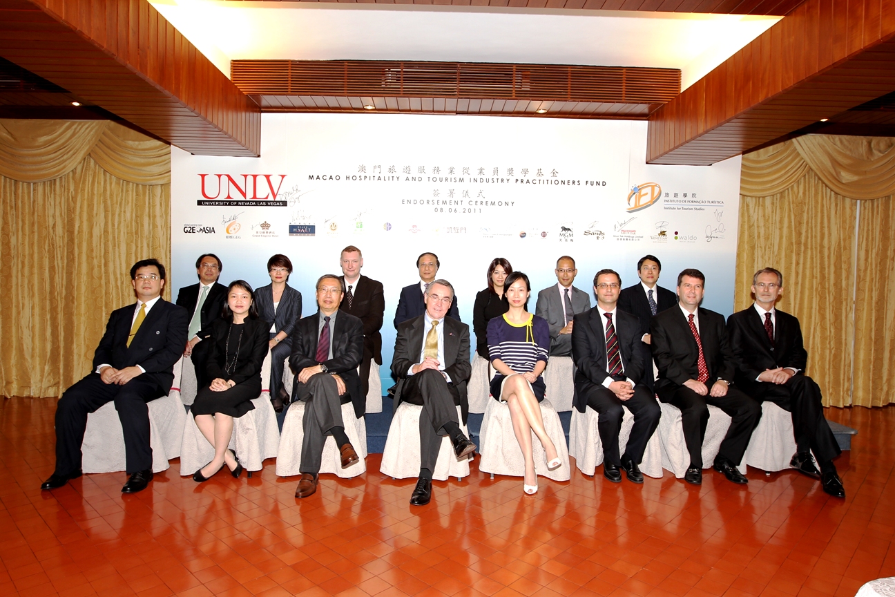 澳門旅遊服務業從業員獎學基金簽署儀式今天於旅遊學院舉行。十五間旅遊業界機構出席儀式。基金由拉斯維加斯內華達大學新加坡分校創辦,為其於澳門之酒店管理行政碩士課程提供額外奬學金。支持機構包括: