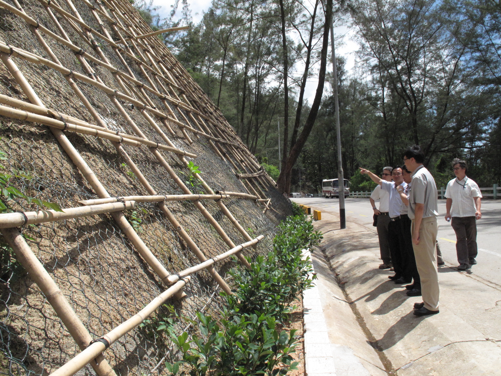 另一方面,隨著社會對環保和綠化的訴求不斷提升,政府修繕公共斜坡的方法亦充份考慮自然生態。以往的公共斜坡加固工程大部份以混凝土噴漿和掛網方法為主,近年則逐漸引入綠化元素,除在斜坡周邊種植小灌木外,整治後的斜坡表面亦會加種植物;若斜坡土質為岩石,則會在掛網上種植攀藤植物,以達到綠化的效果。為了達到綠化斜坡的目的,政府對有關工程作招標時,將綠化技術列為評標考量因素之一。