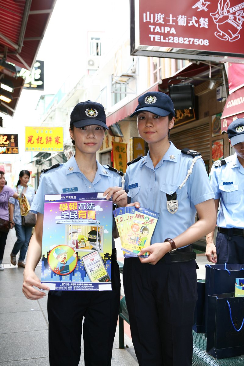 離島區旅遊元素較集中,吸引大量遊客到訪。據本局統計數據顯示,本年首五個月,在離島區接報的街頭及店鋪扒竊案共35宗,較去年同期下降約二成,然而財物被盜的事主中約八成為遊客,故治安警察局繼本月初在新馬路一帶及關閘巴士總站進行防扒宣傳後,於今早再到氹仔區官也街一帶進行宣傳工作,冀提高居民及遊客的防罪意識,減低財物被盜的機會。