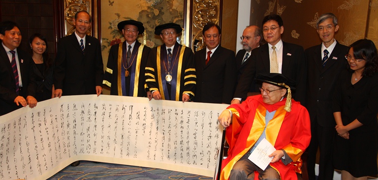 澳門大學向傑出文學家查良鏞博士(筆名金庸)頒授榮譽文學博士學位,以表彰其在文化領域創造的傑出成績和對社會做出的卓越貢獻。