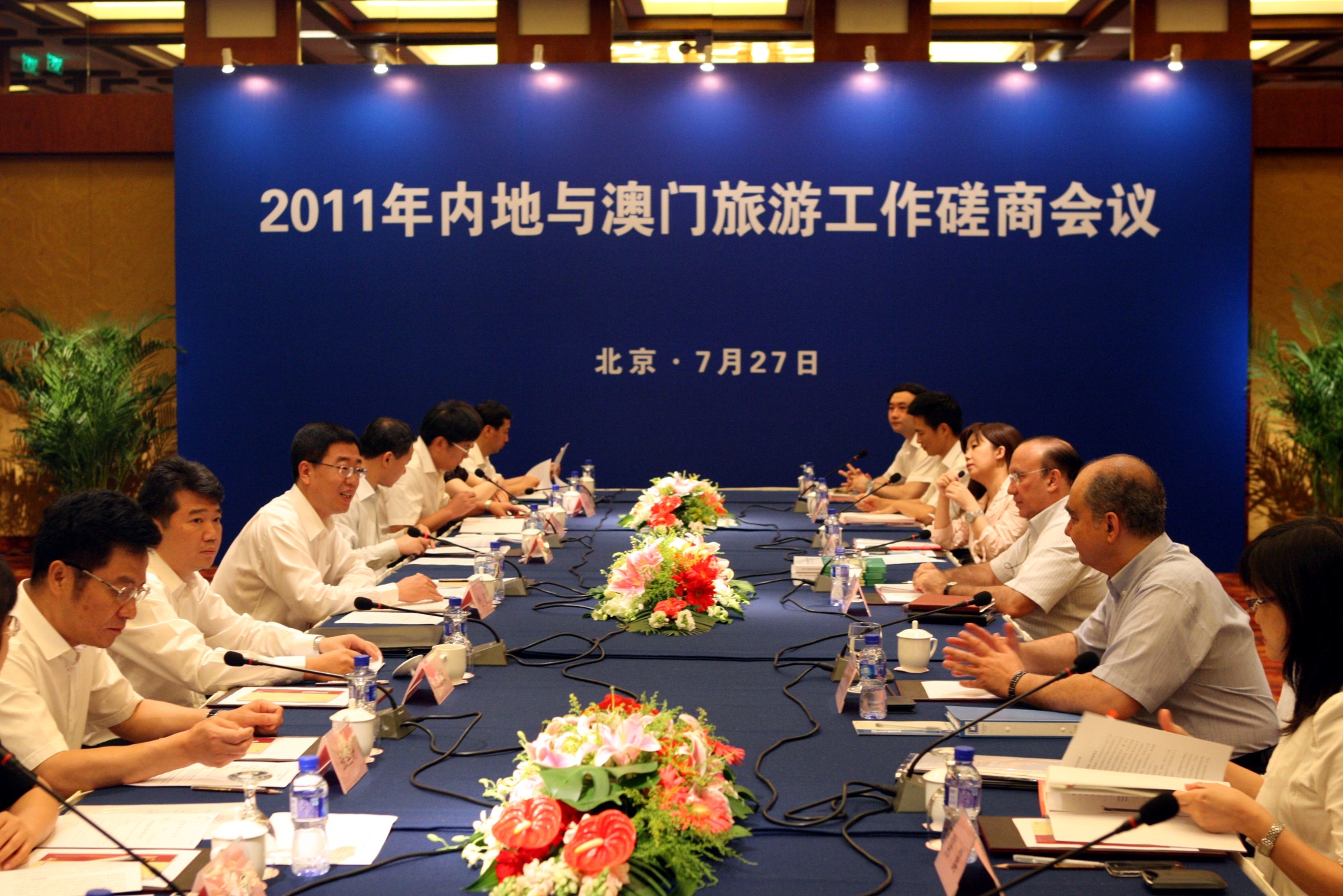 國家旅遊局與澳門特區政府旅遊局在北京召開2011年內地與澳門旅遊工作磋商會議。會議的主題是“共同規範市場秩序、攜手推進產業合作”。會議由國家旅遊局副局長杜江、澳門特區政府旅遊局局長安棟樑共同主持。
