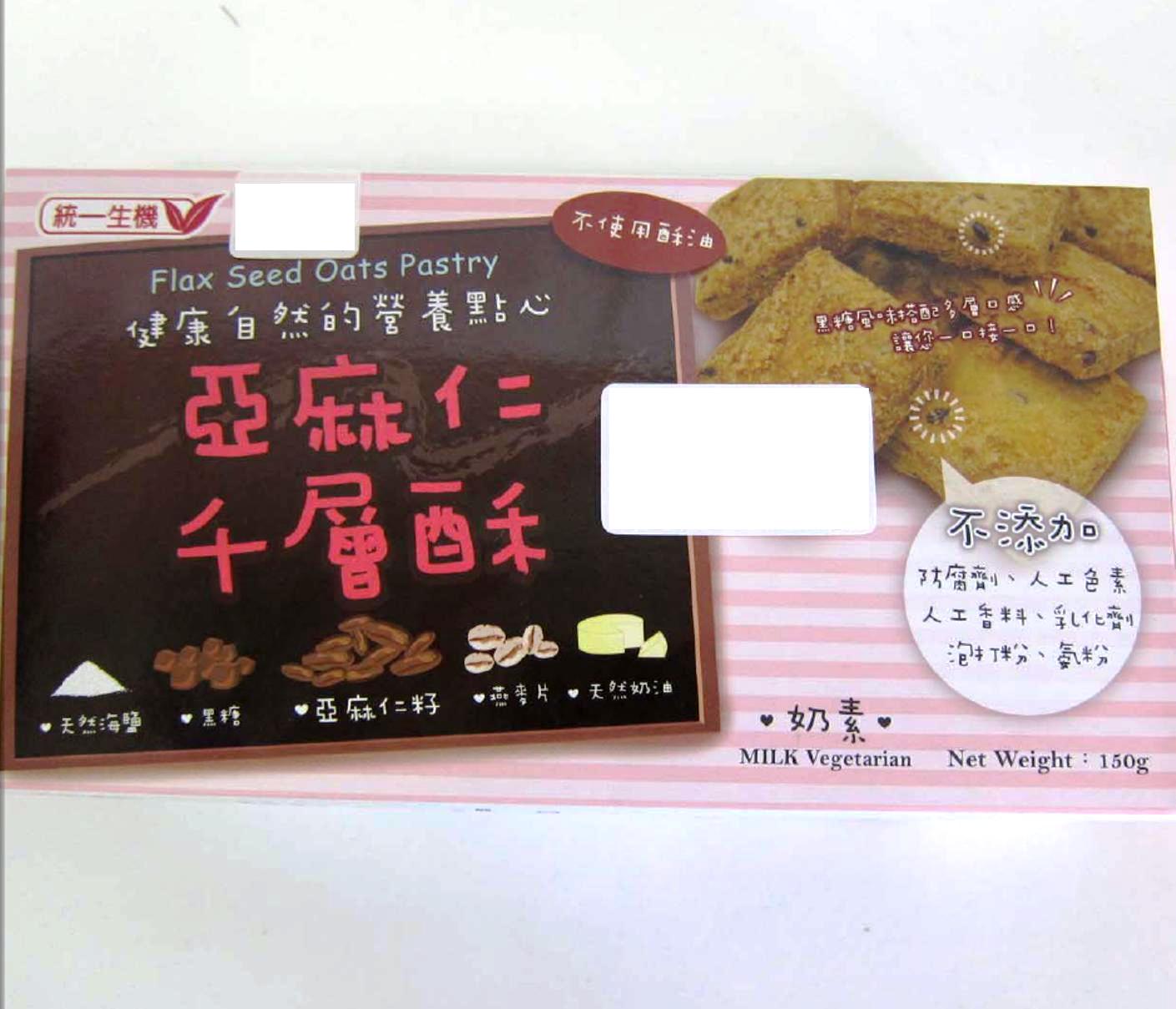 疑受塑化劑污染之食品名稱分別為“統一生機亞麻仁千層酥”及“統一生機香椿千層酥”,淨重均為150克(每包內含2小包,每小包約重75克),食用有效期限分別為2011年11月5日及2011年9月30日,包裝標示產品生產商為統一生機開發股份有限公司(台灣桃園中壢市)。經化驗上述兩款食品的塑化劑DEHP含量分別為1.8ppm及2.3ppm,均超出1.5ppm的行動水平。