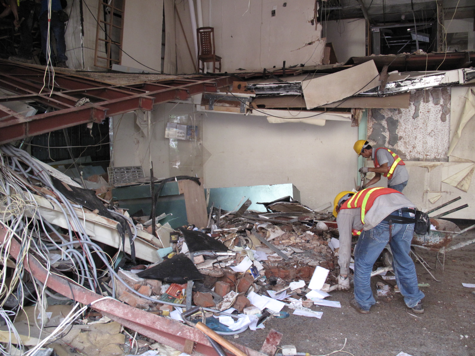 新口岸國際中心地舖發生爆炸事件後的第4天,政府連日來日以繼夜加緊善後工作,土地工務運輸局聯同各相關部門及專營公司,在事發後第2天恢復了臨時供電,拆除了有跌落危險的商舖外牆後,基於仍然面對環境狹窄、瓦礫雜物散亂、供排水渠管設施受損嚴重等技術困難,工程人員及自來水公司工作人員於今日(30日)凌晨2時許趕工完成了臨時排水設施,並於今早7時許繼續搶修供水系統。
