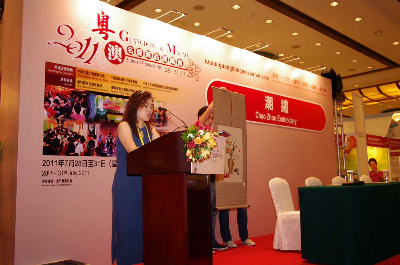 今天大會安排了4場專業推介會,內容涉及茶藝、保健食品、刺繡及銀行服務。包括潮汕抽紗研究所主辦之「潮繡」、寶發洋行主辦之「草本 “靈芝”及 “雲芝”之種類,特性與功效」、中國銀行澳門分行主辦之「中國銀行流動銀行服務」及澳門茶故事主辦之「中國傳統茶藝表演」。