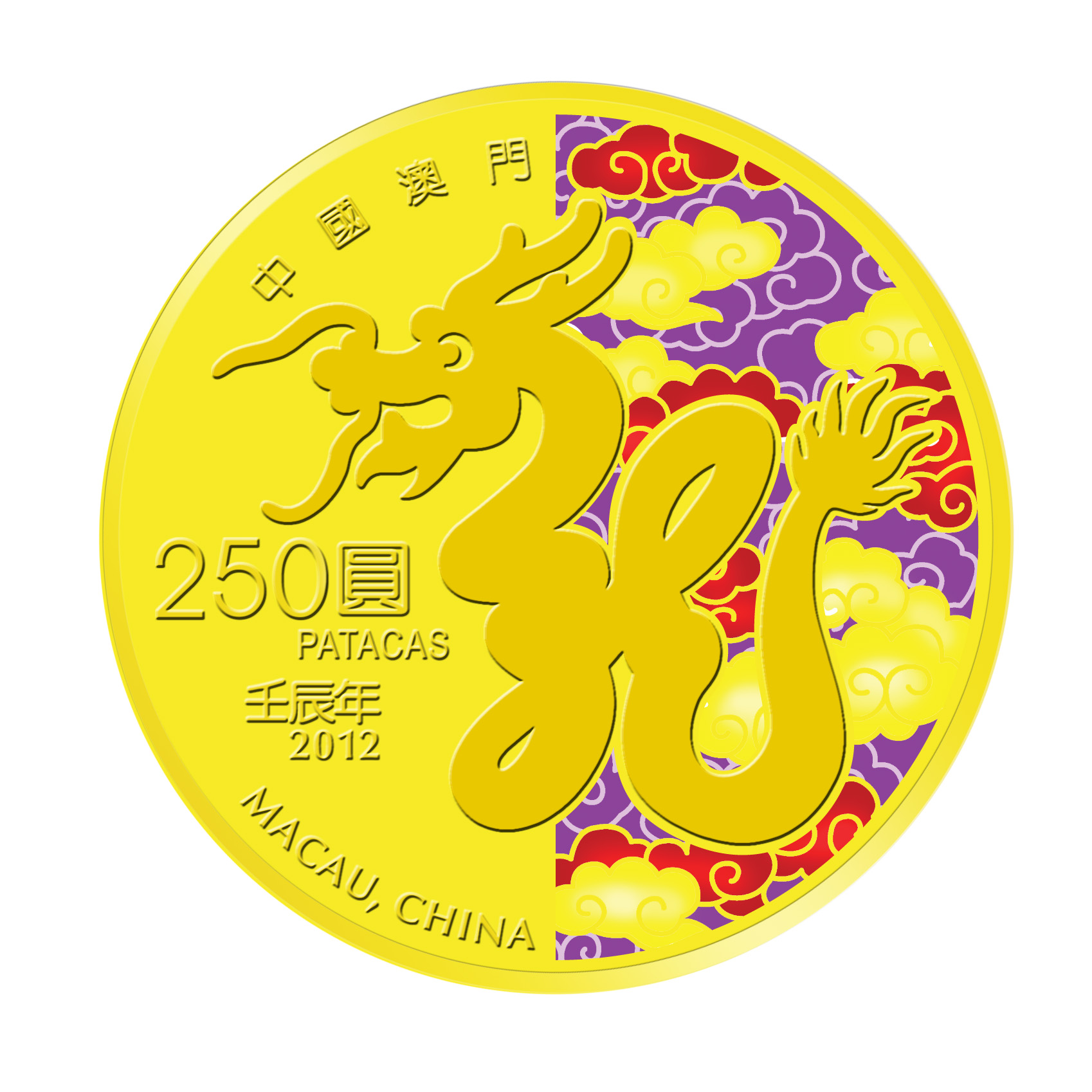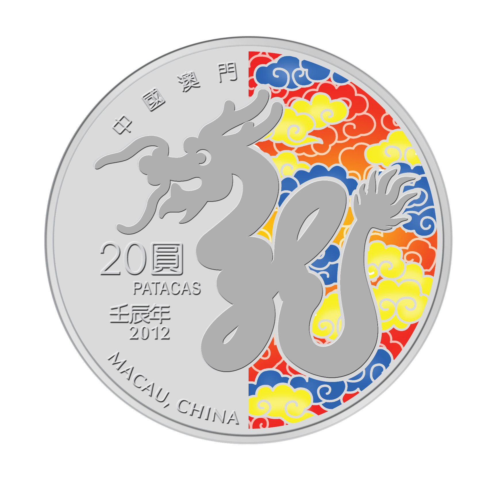 澳門金融管理局(AMCM)於2008 年推出全新系列之農曆年紀念幣,龍年紀念幣為系列的第五套紀念幣。三款紀念幣之設計圖案相同,但色調不一;紀念幣正面鑄有中國神龍的圖案,背面則為議事亭前地的圖案。此全新系列之農曆年紀念幣經金融管理局委託以精巧工藝馳名的新加坡造幣廠鑄造。